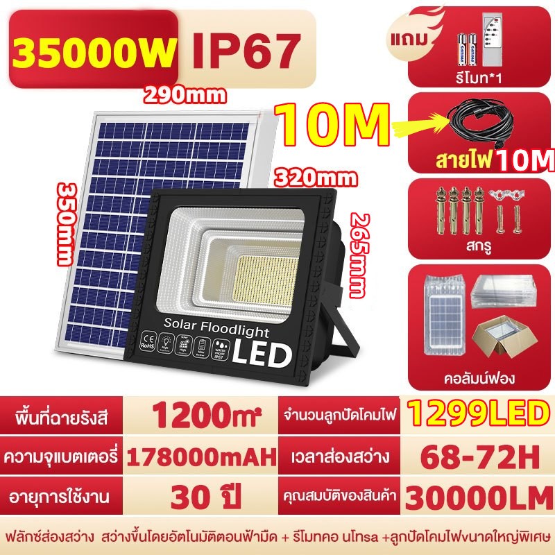 รับประกัน 10ปี ซื้อ 1 แถม 1 ไฟโซล่าเซลล์ โซล่าเซล สปอตไล 4000W 6000W 10000W โคมไฟโซล่าเซล โคมไฟติดผนัง โคมไฟสปอร์ตไล