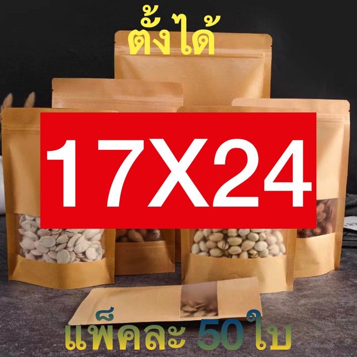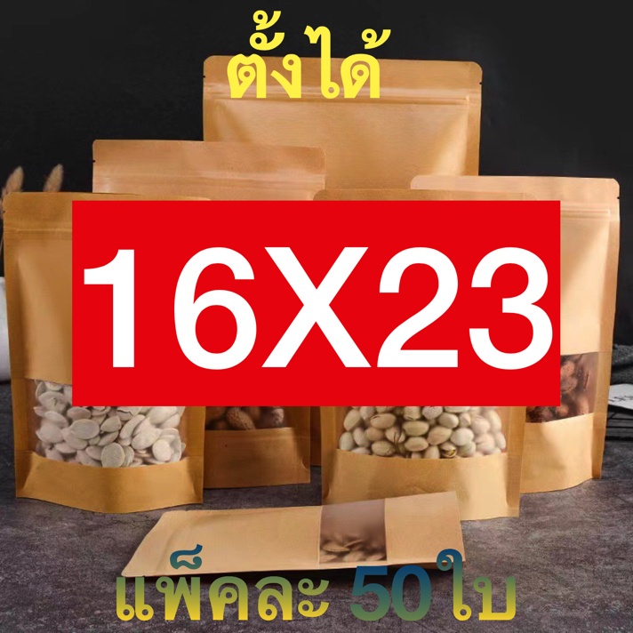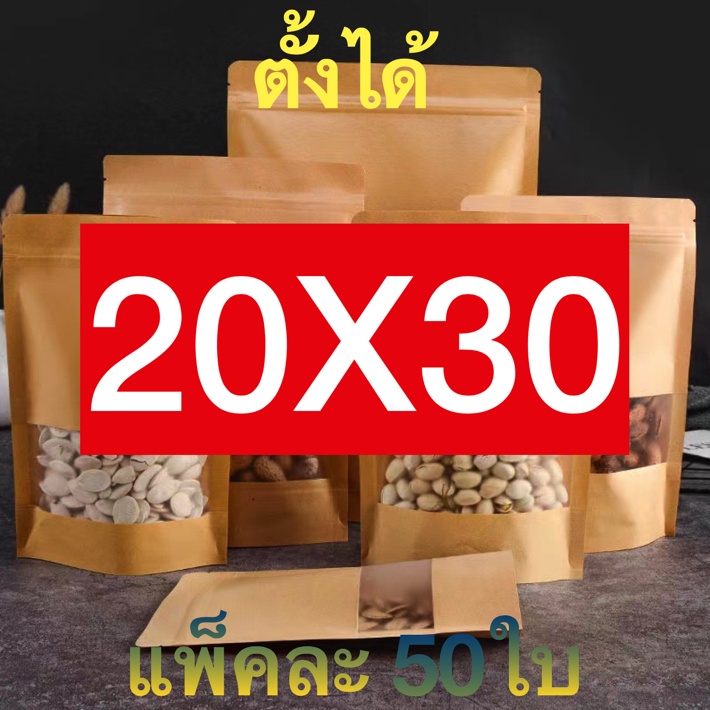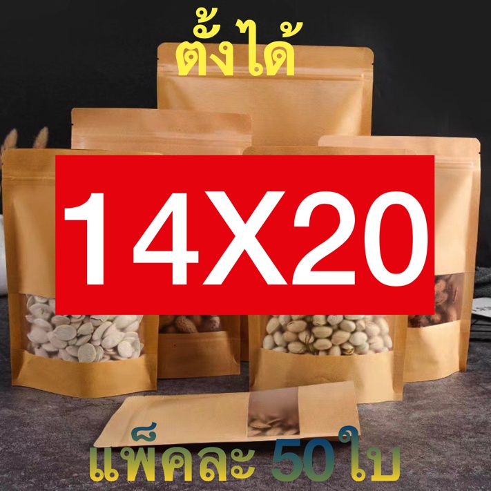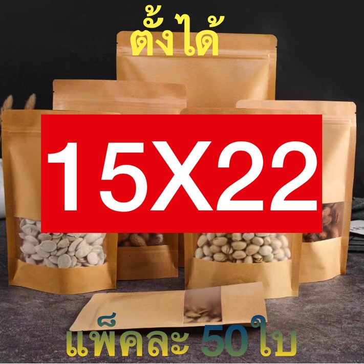 ถุงคราฟท์ สีน้ำตาล หน้าต่างใส ตั้งได้ ถุงซิปล็อคกระดาษคราฟท์ ถุงซิปล็อก Bag ซองขนม ซองชา ถุงกระดาษมีซิป (50ใบ)