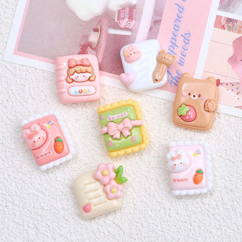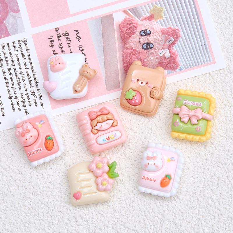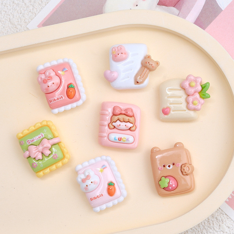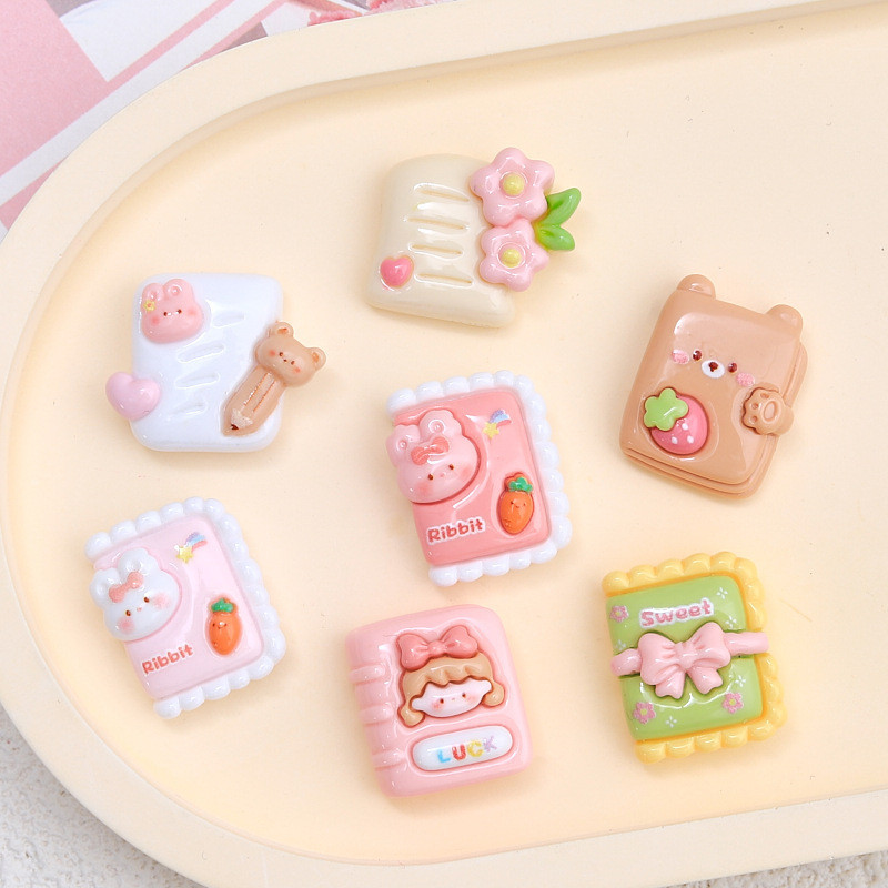 [3 #] น่ารักกระต่ายหนังสือการ์ตูนครีมกาวอุปกรณ์เสริมกิ๊บหลุมรองเท้าหัวเข็มขัดตกแต่งอุปกรณ์เรซินทําเองเครื่องประดับ XD