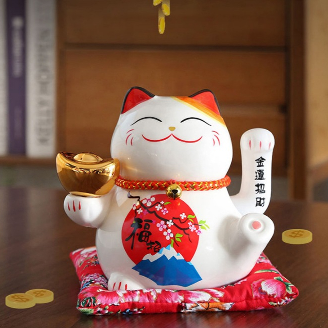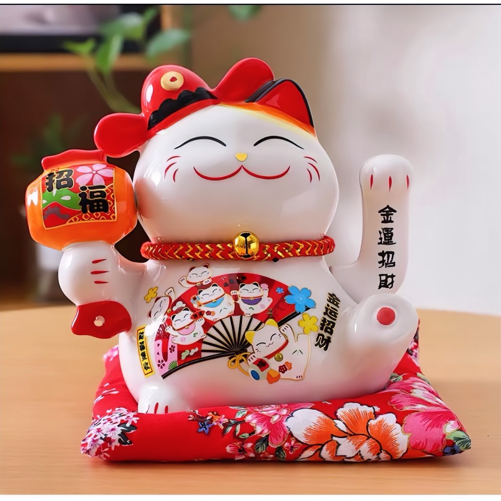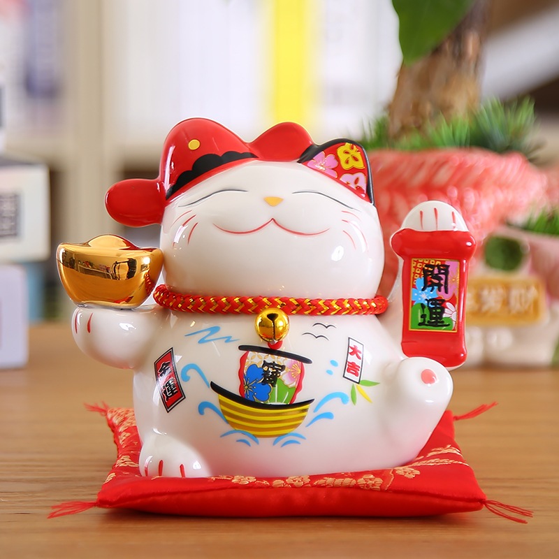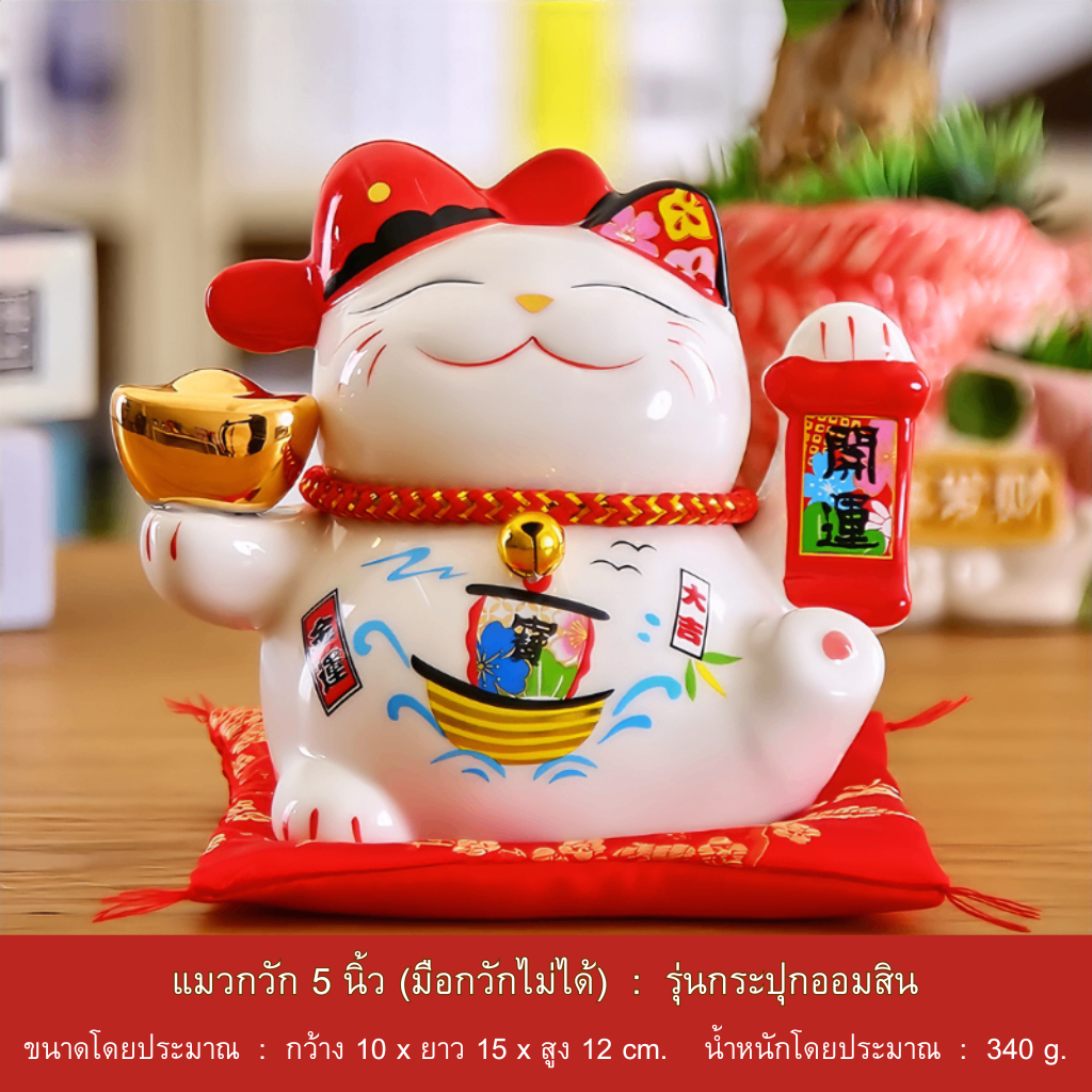 กระปุกออมสิน แมวกวัก แมวสไตล์ญี่ปุ่น กวักโชคลาภ เงินทอง กวักมือเรียกลูกค้าเข้าร้าน สูง 5นิ้วและ6นิ้ว