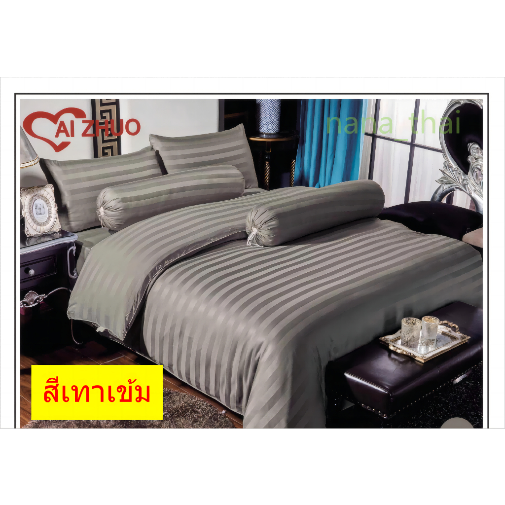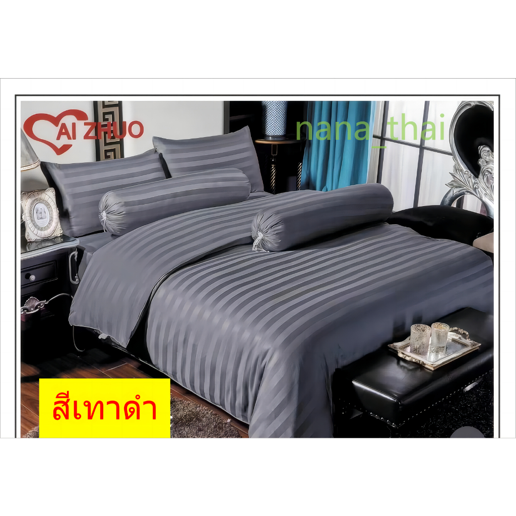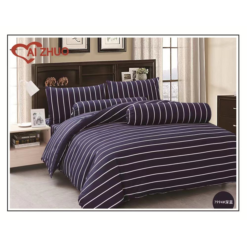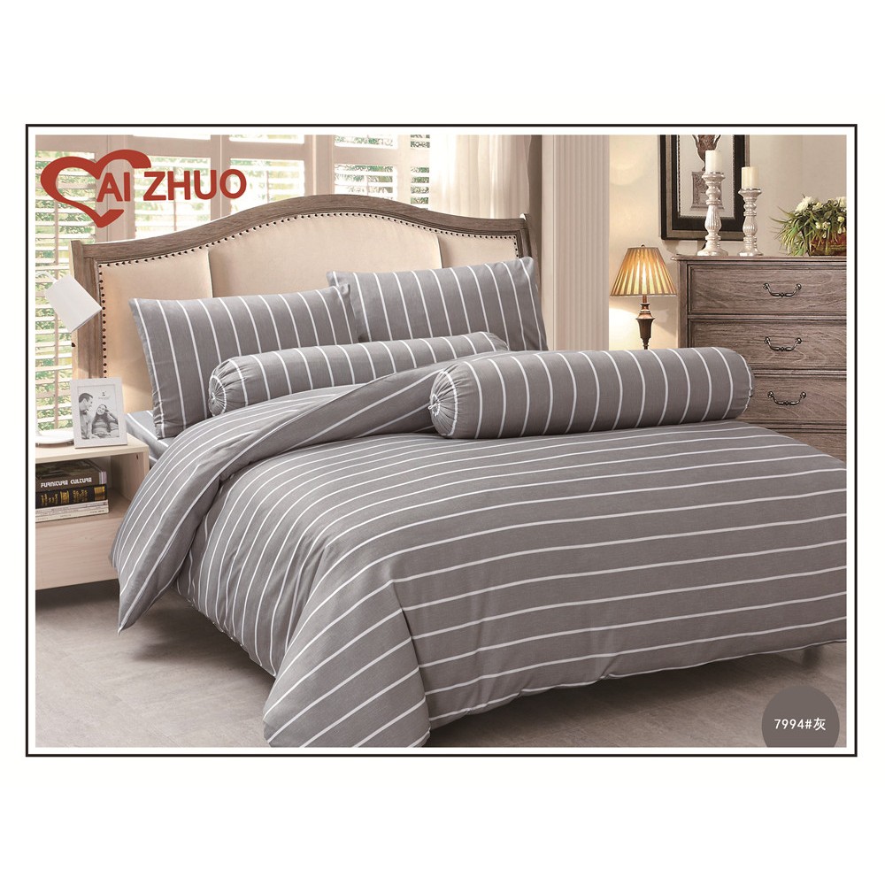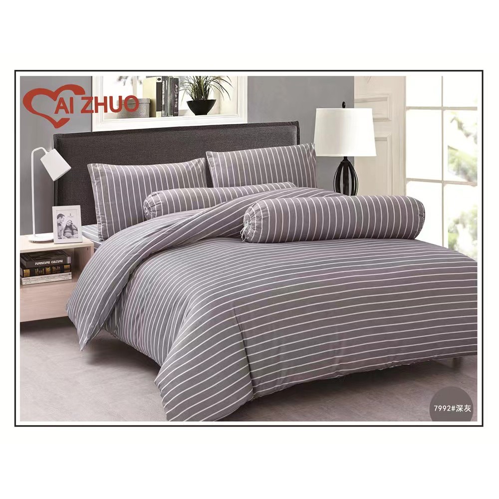 ผ้าปูที่นอน+ผ้านวม ลายริ้ว Ai Zhuo ชุดผ้าปูที่นอน5ฟุต 6 ฟุต ราคาถูก สุดคุ้ม ระบายอากาศได้ดี หรูหรา นุ่ม ลื่น#TJ