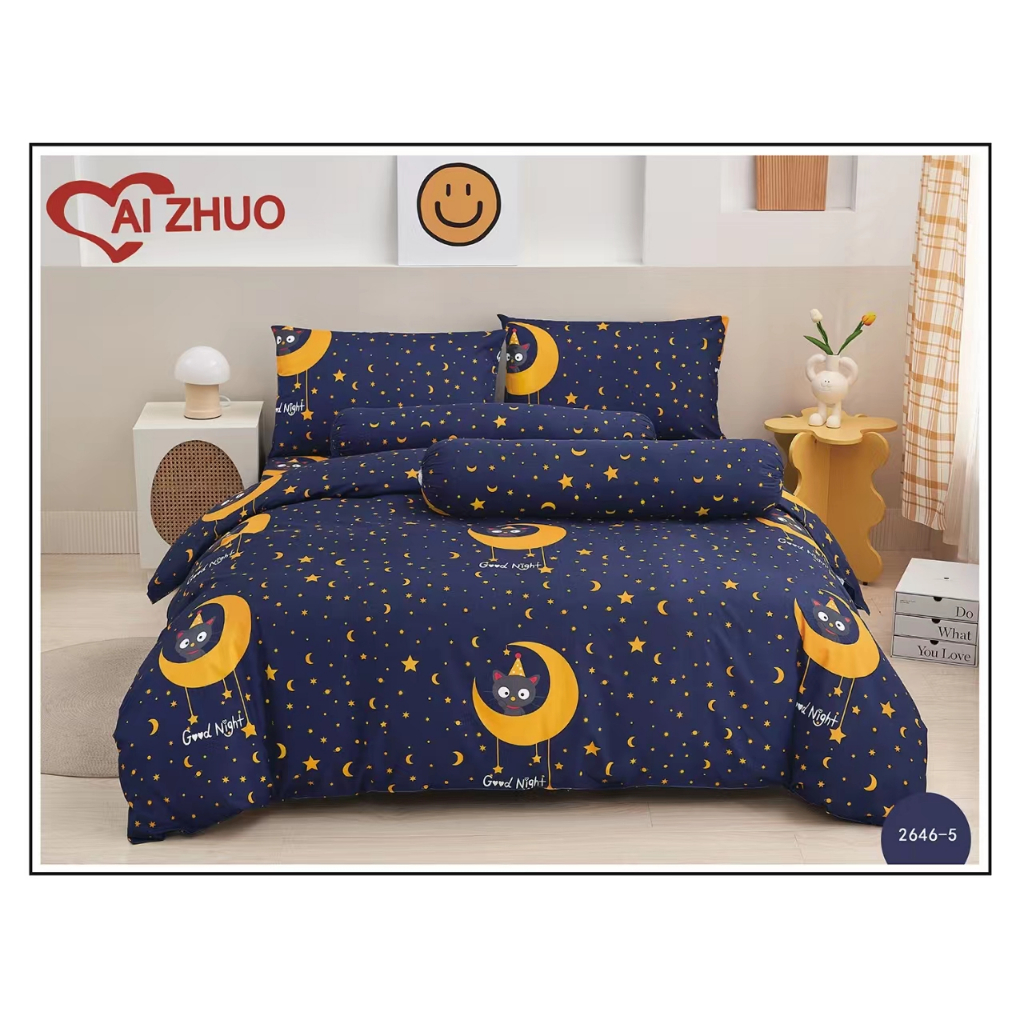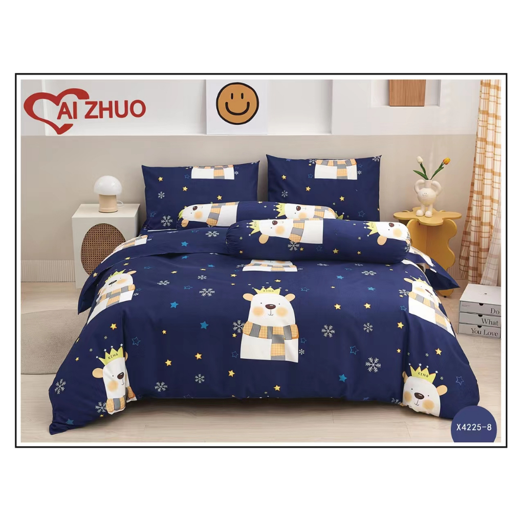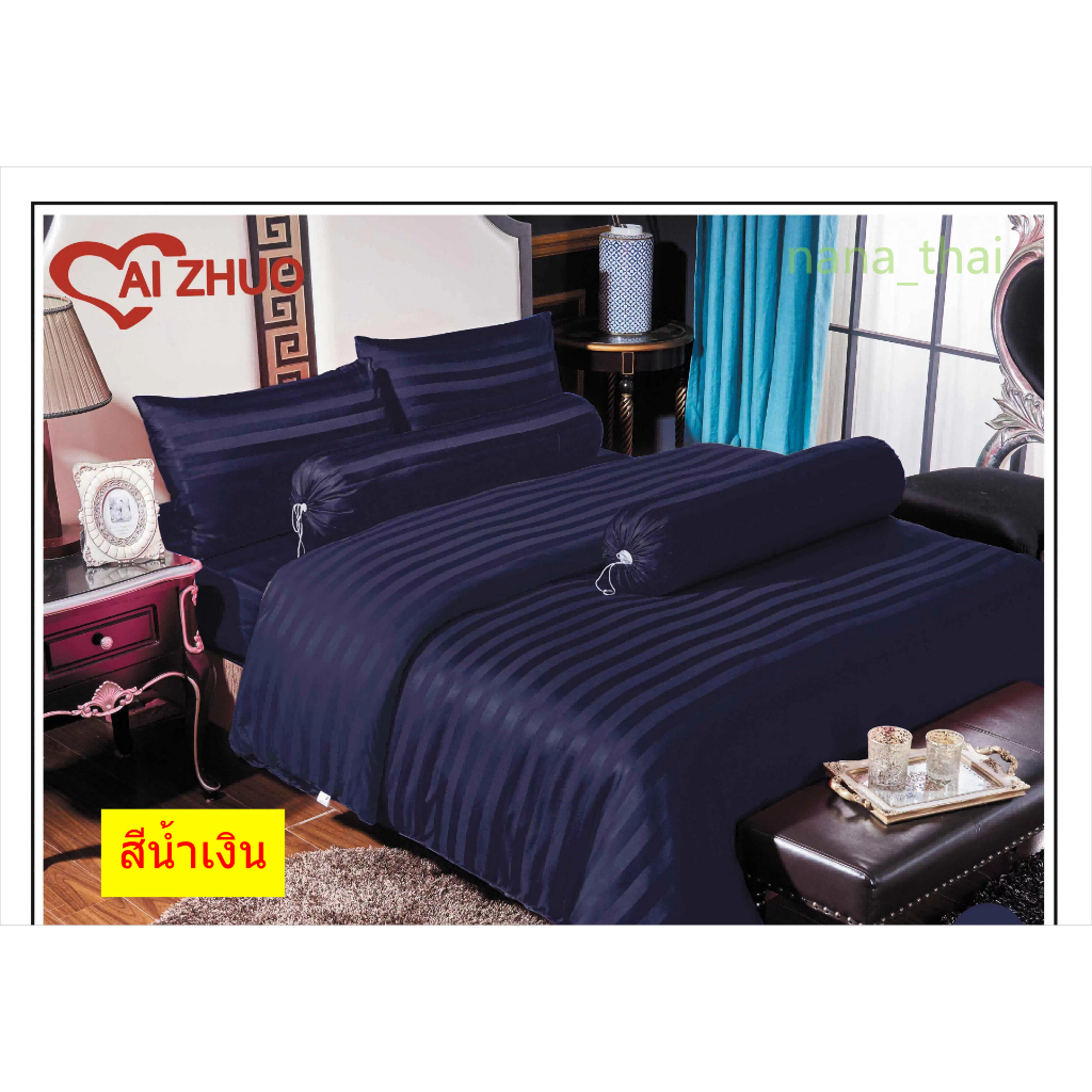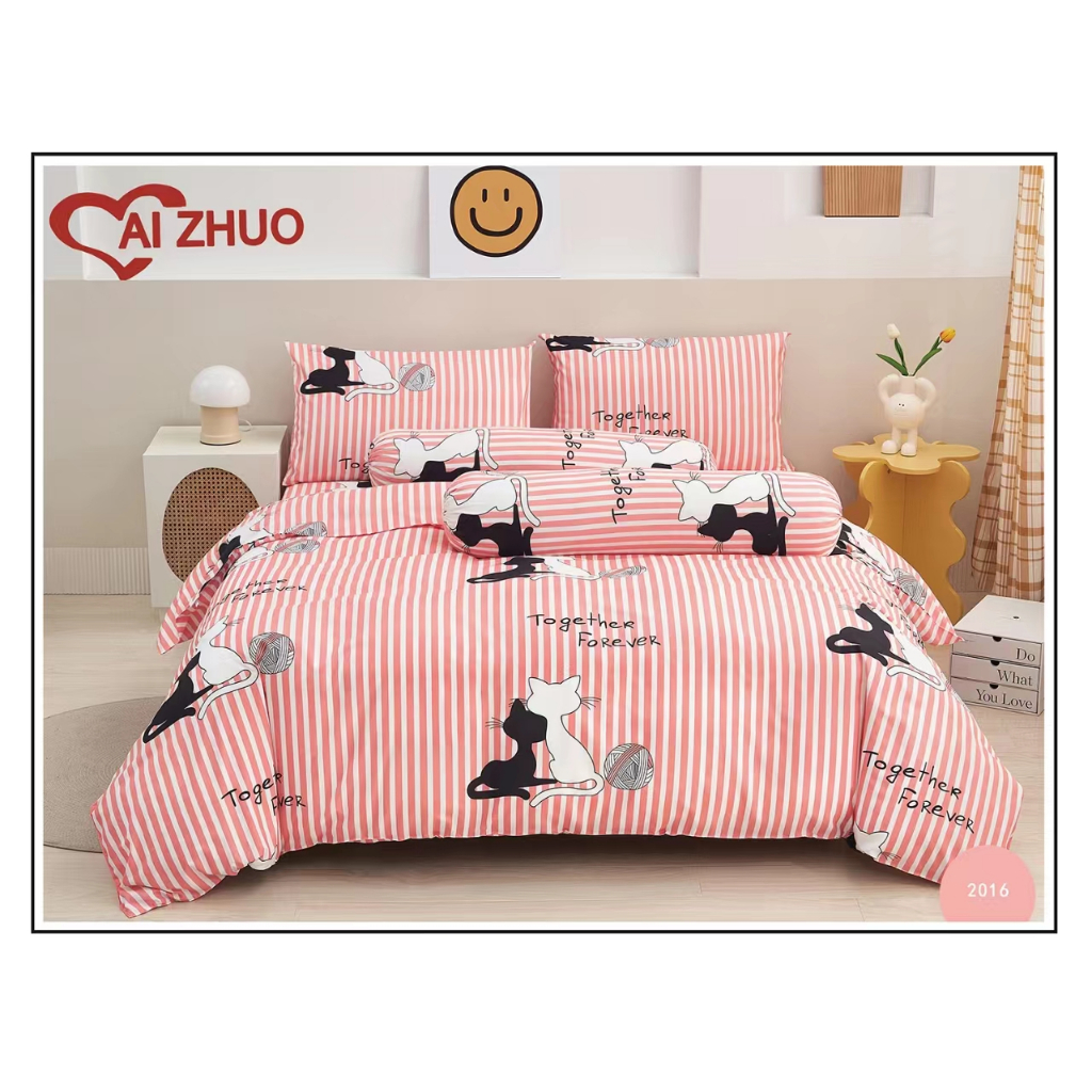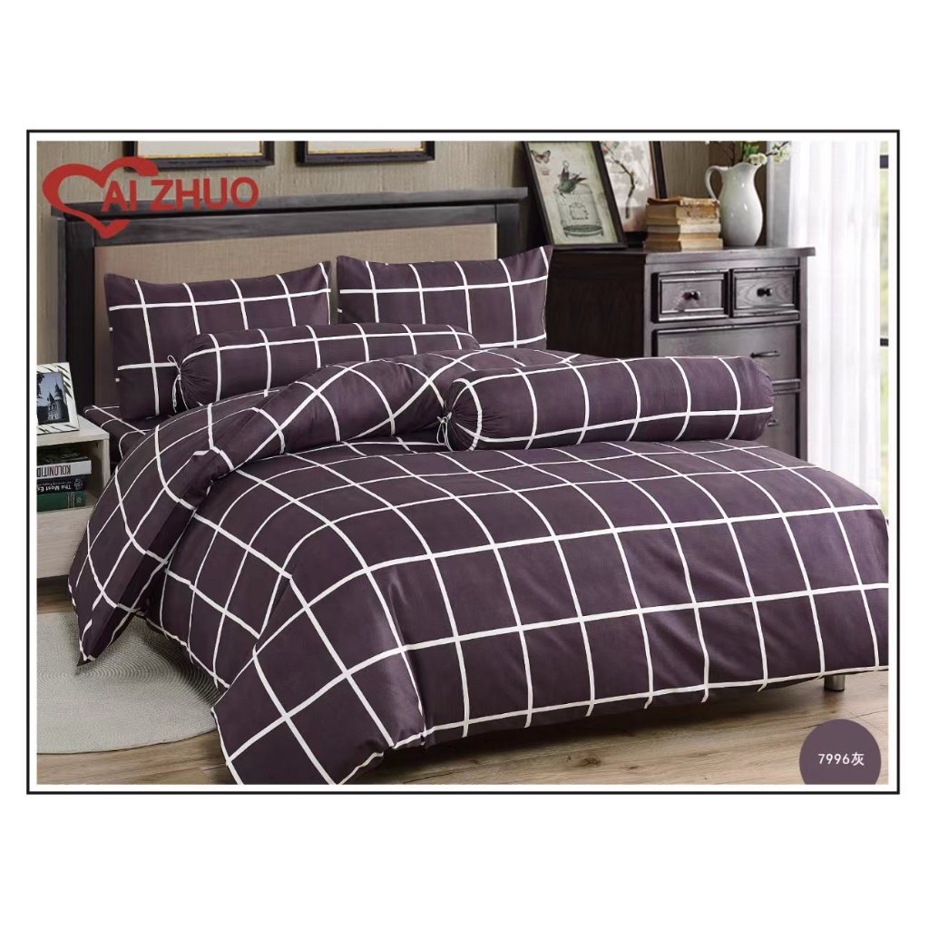 ผ้าปูที่นอน+ผ้านวม ลายริ้ว Ai Zhuo ชุดผ้าปูที่นอน5ฟุต 6 ฟุต ราคาถูก สุดคุ้ม ระบายอากาศได้ดี หรูหรา นุ่ม ลื่น#TJ