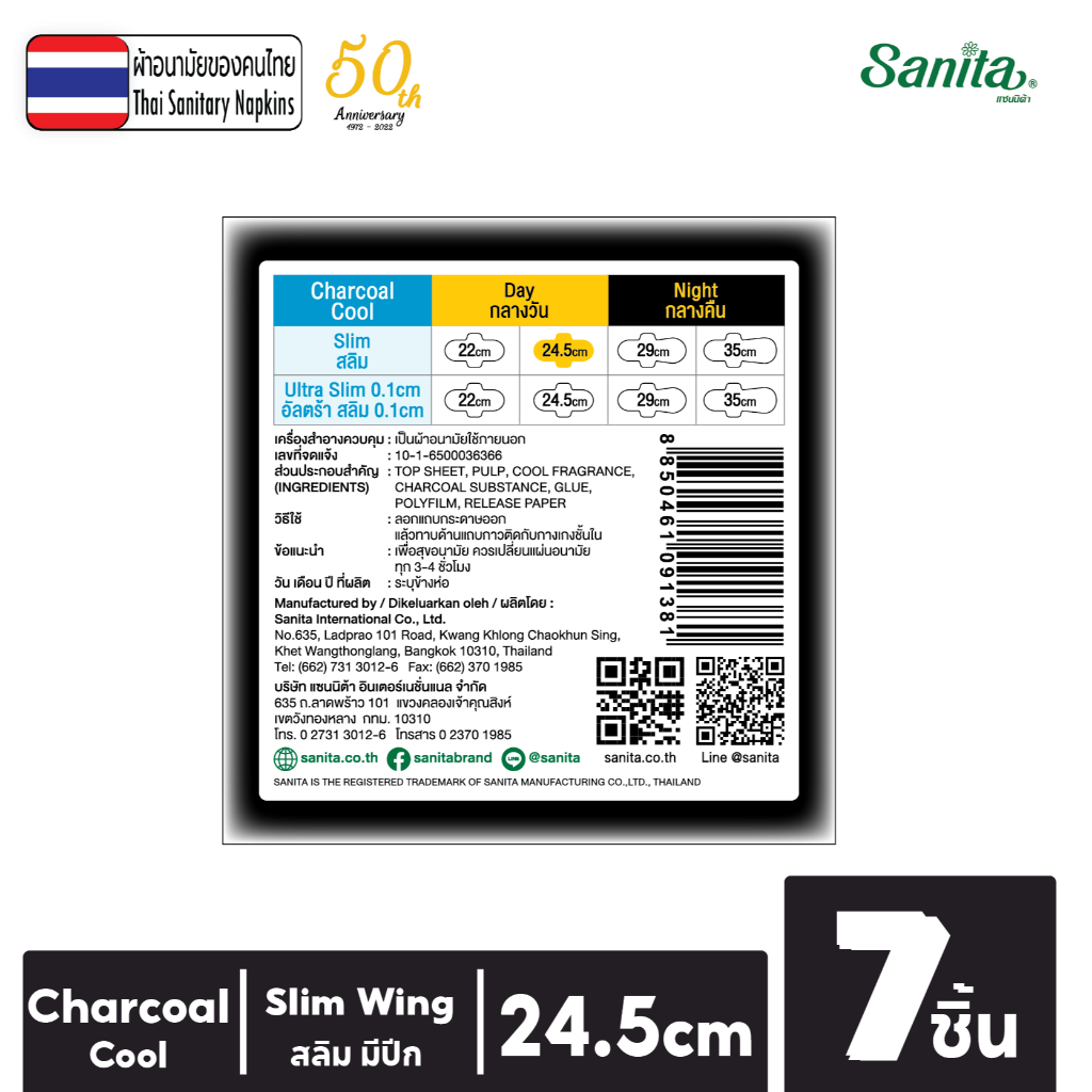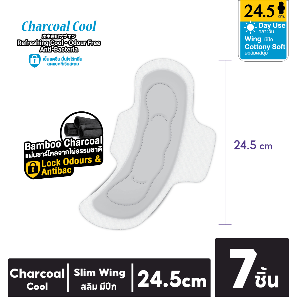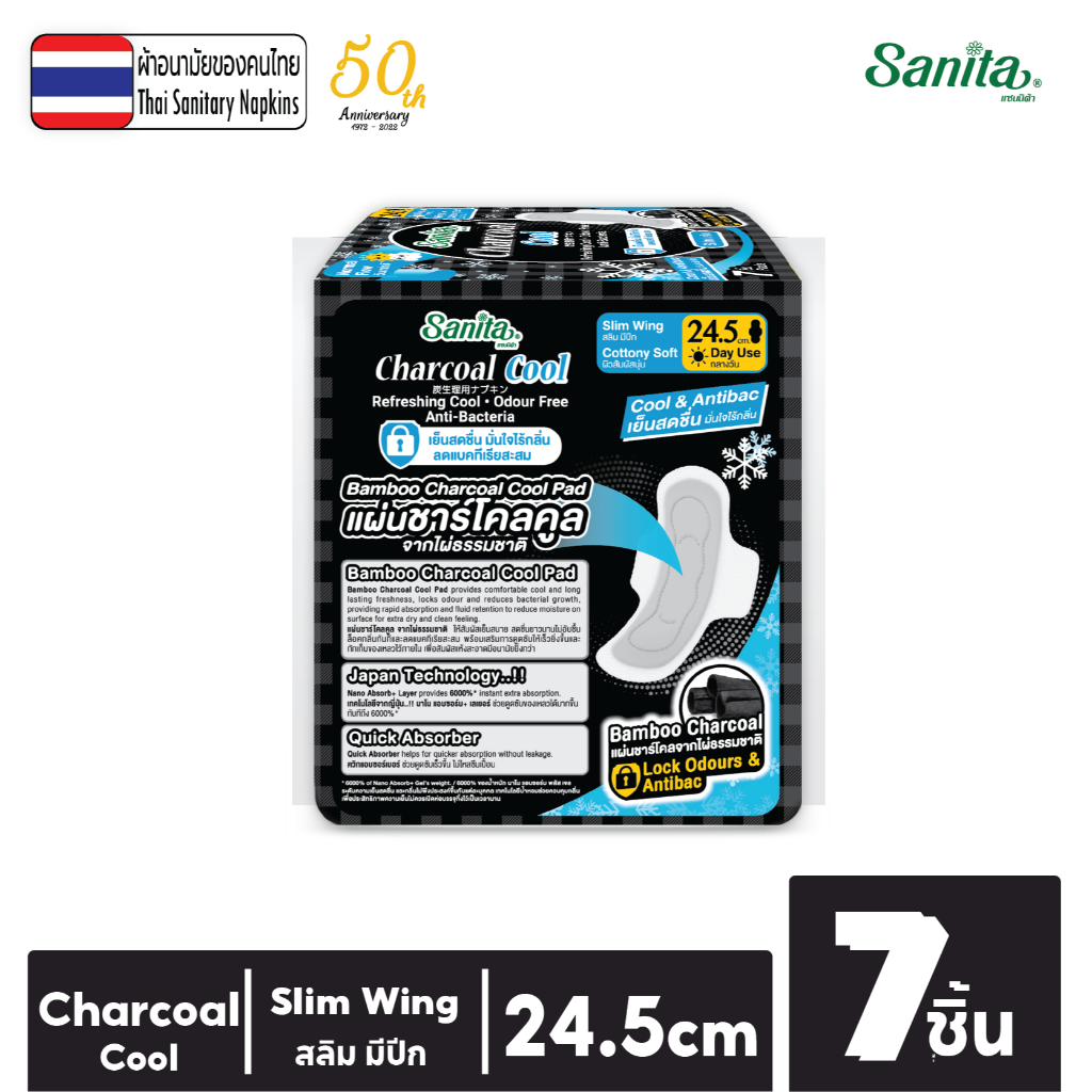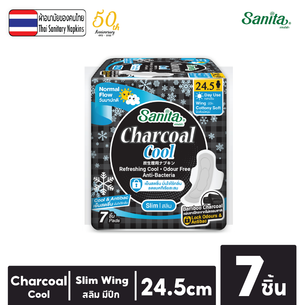 Sanita Charcoal Cool / แซนนิต้า ผ้าอนามัย ชาร์โคล คูล สลิม มีปีก 24.5ซม. / 7 ชิ้น/ห่อ (เย็นสดชื่น )