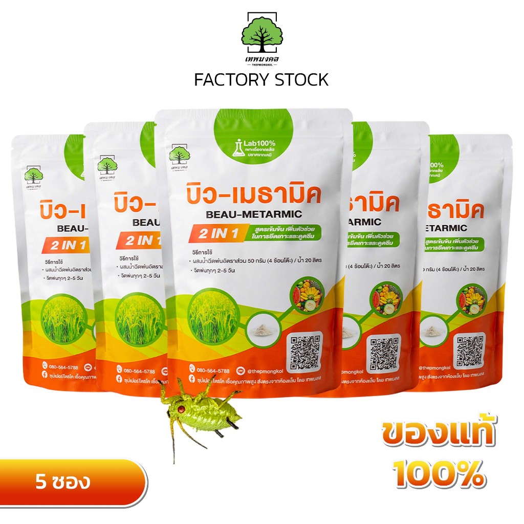 บิว-เมธามิค ตราเทพมงคล แพ็ค 5 ซอง ชนิดผง ขนาด 500 กรัม สูตรเข้มข้นพิเศษ ป้องกัน และกำจัดแมลงศัตรูพืช
