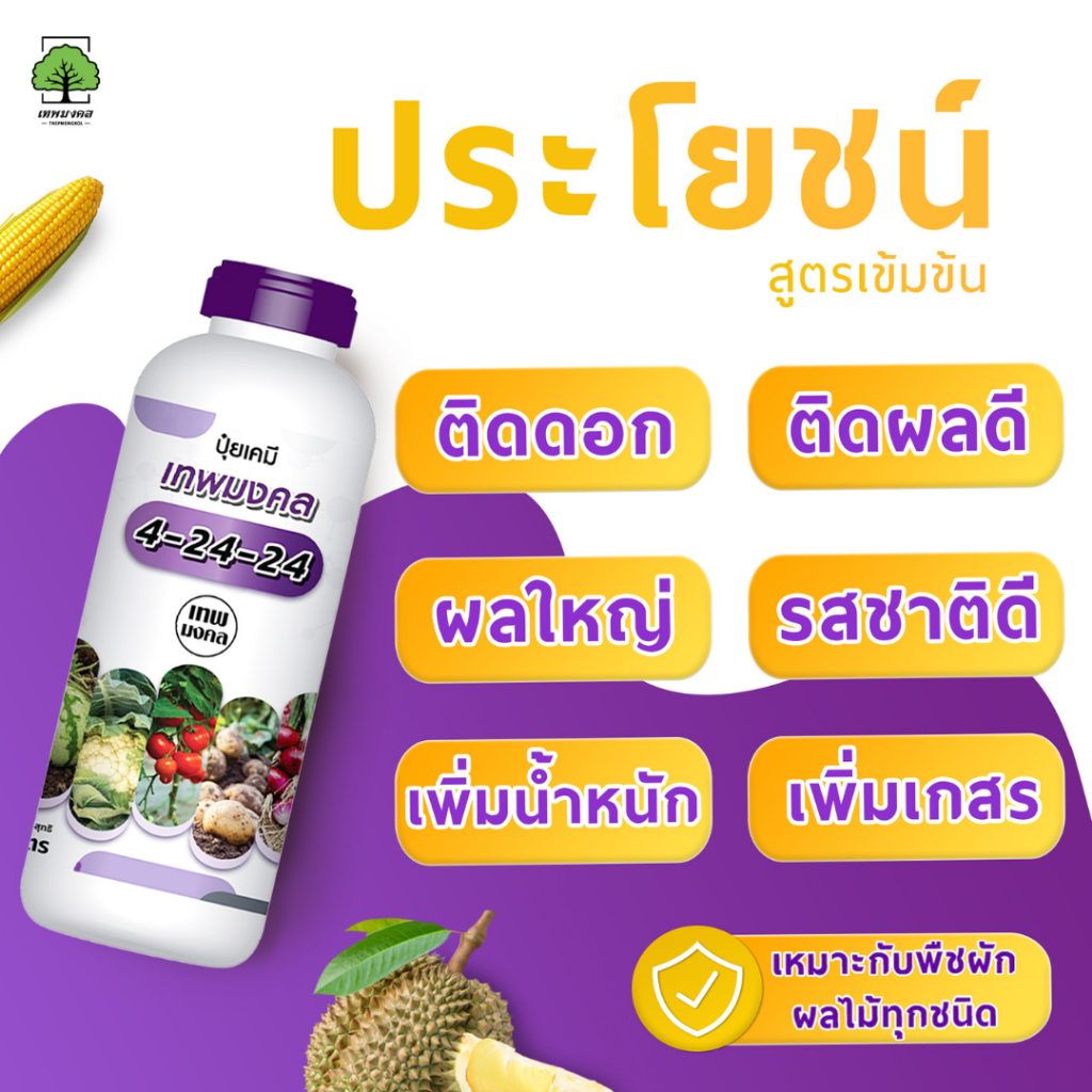 ปุ๋ยน้ำตราเทพมงคล สูตร 4-24-24 แพ็ค 2 ขวด เปิดตาดอกขยายผล เพิ่มผลผลิต เพิ่มเนื้อ เพิ่มน้ำหนัก 1 ลิตร
