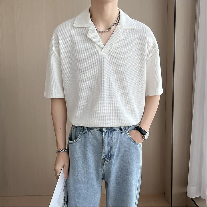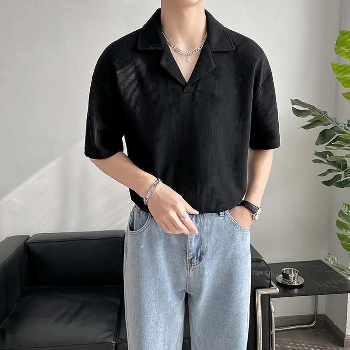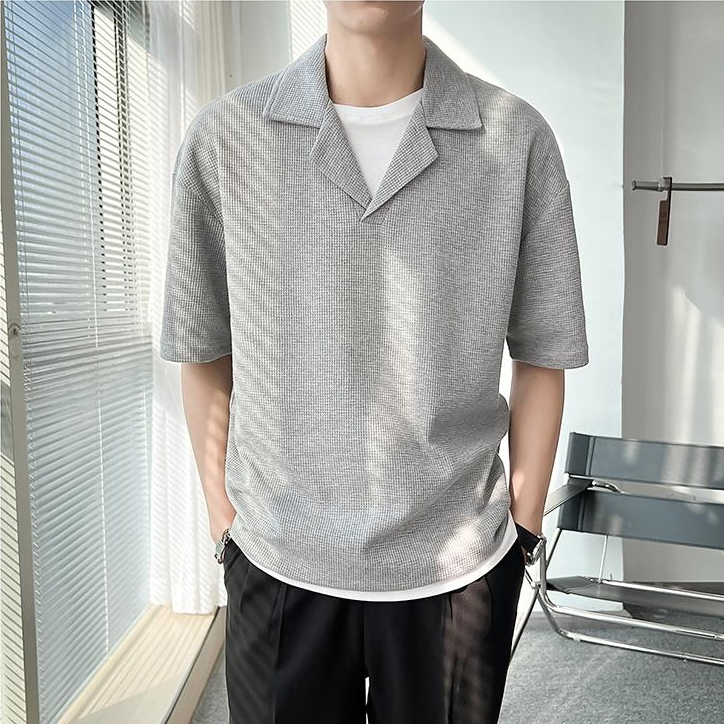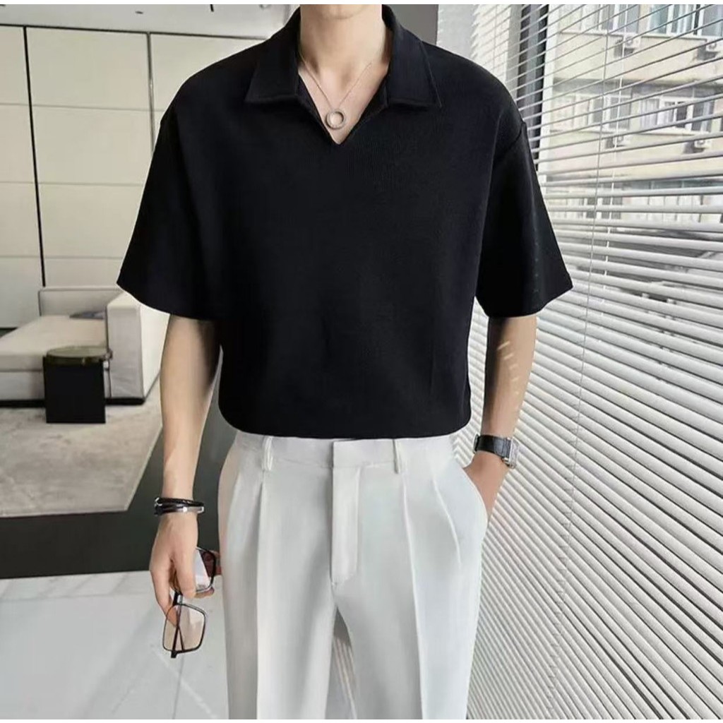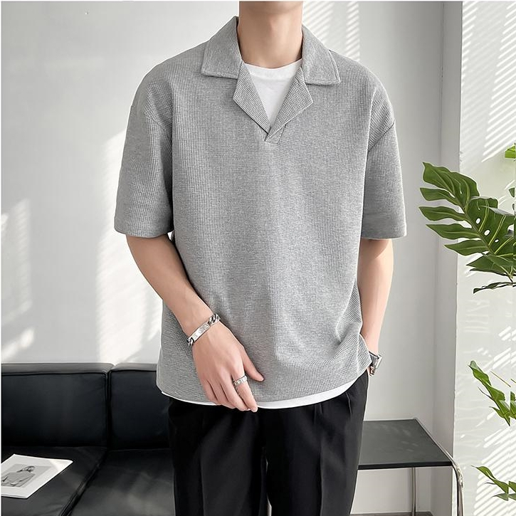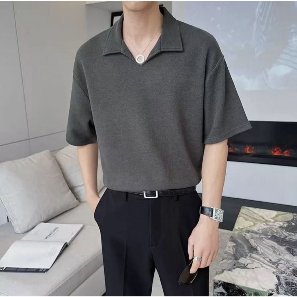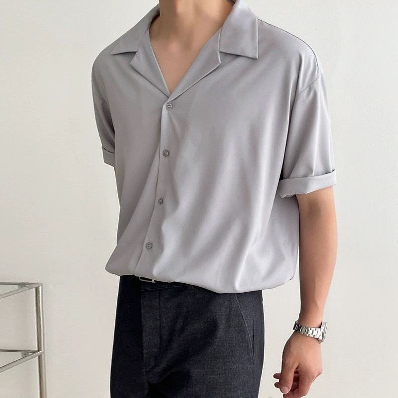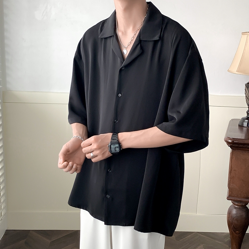 ⚡️Proman⚡️จัดส่งจากกรุงเทพ📦 เสื้อเชิ้ตแขนสั้น ผู้ชาย คอพับสไตล์เกาหลี ทรงหลวม สวมใส่สบาย มีสีดำ สีขาว และสีเทา