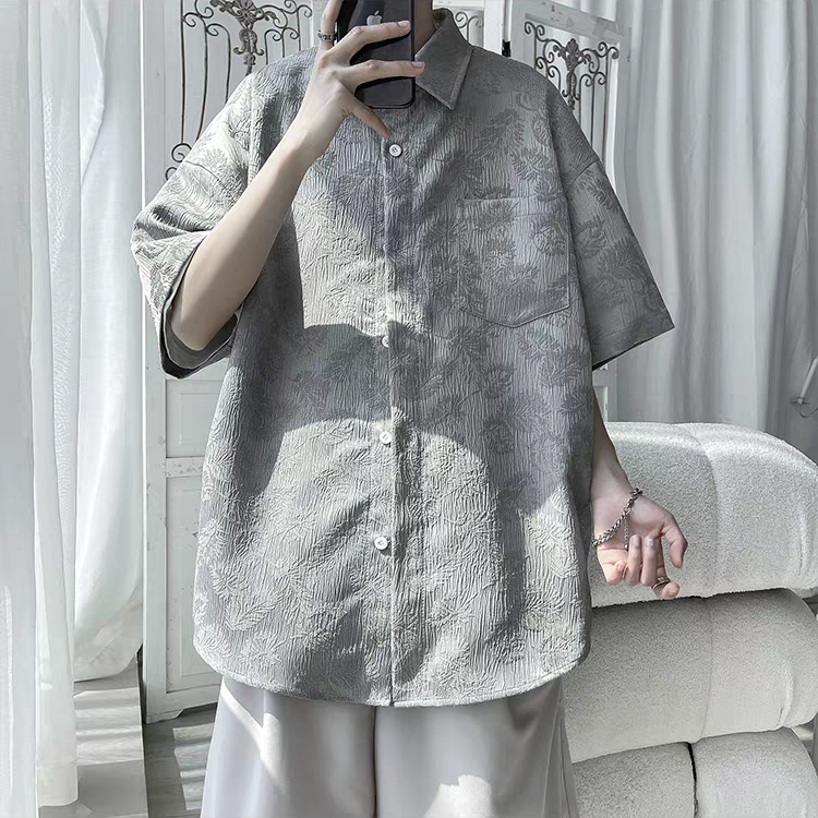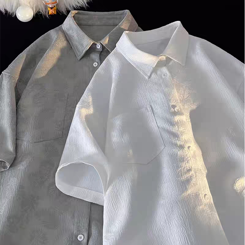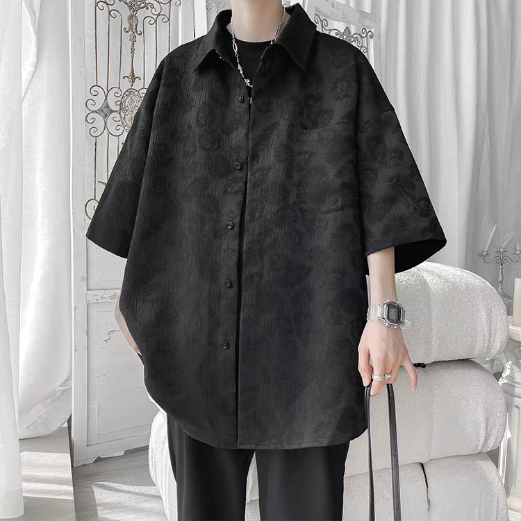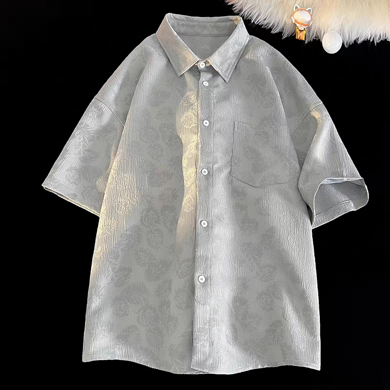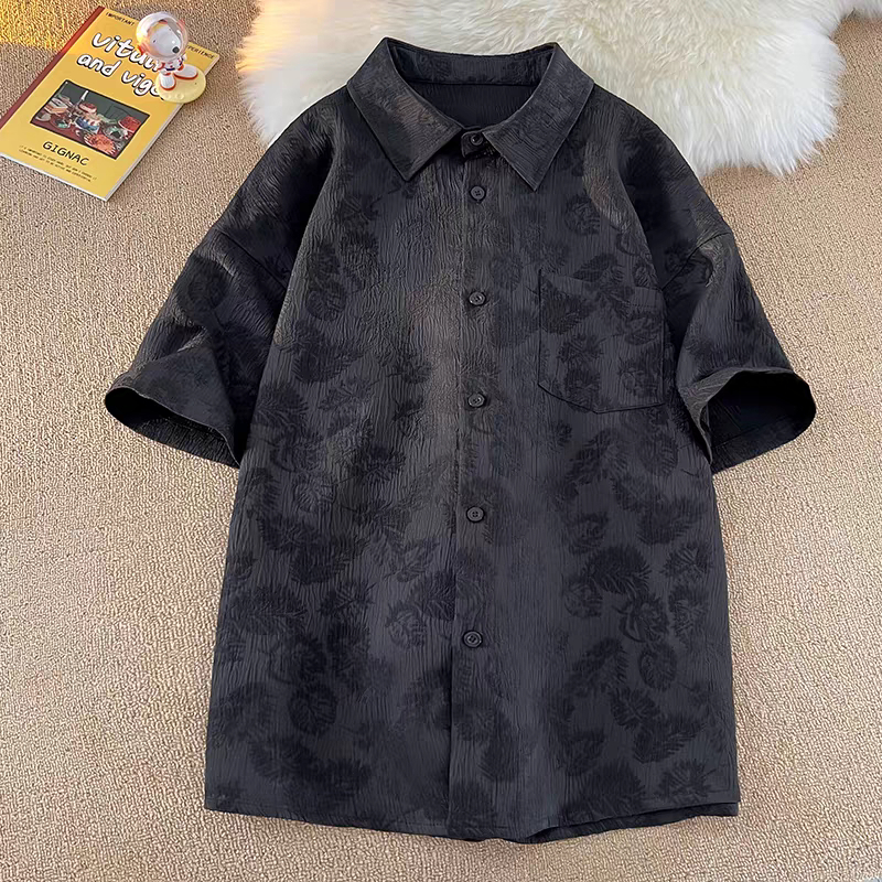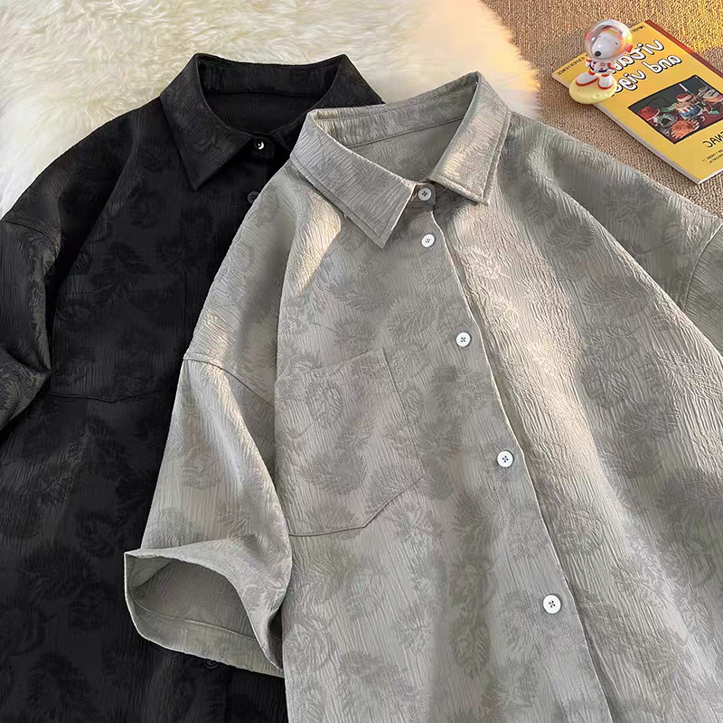 ⚡ProMan⚡เสื้อเชิ้ตผู้ชาย ลายดอกไม้ สีล้วน ใส่ได้ทั้งชายและหญิง สไตล์อเมริกันวินเทจ