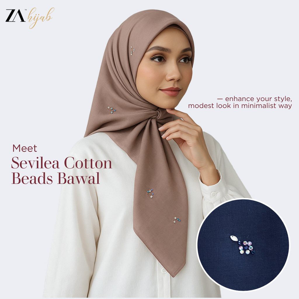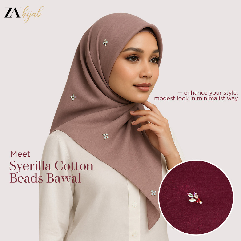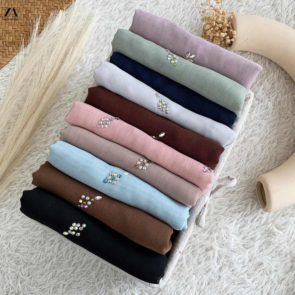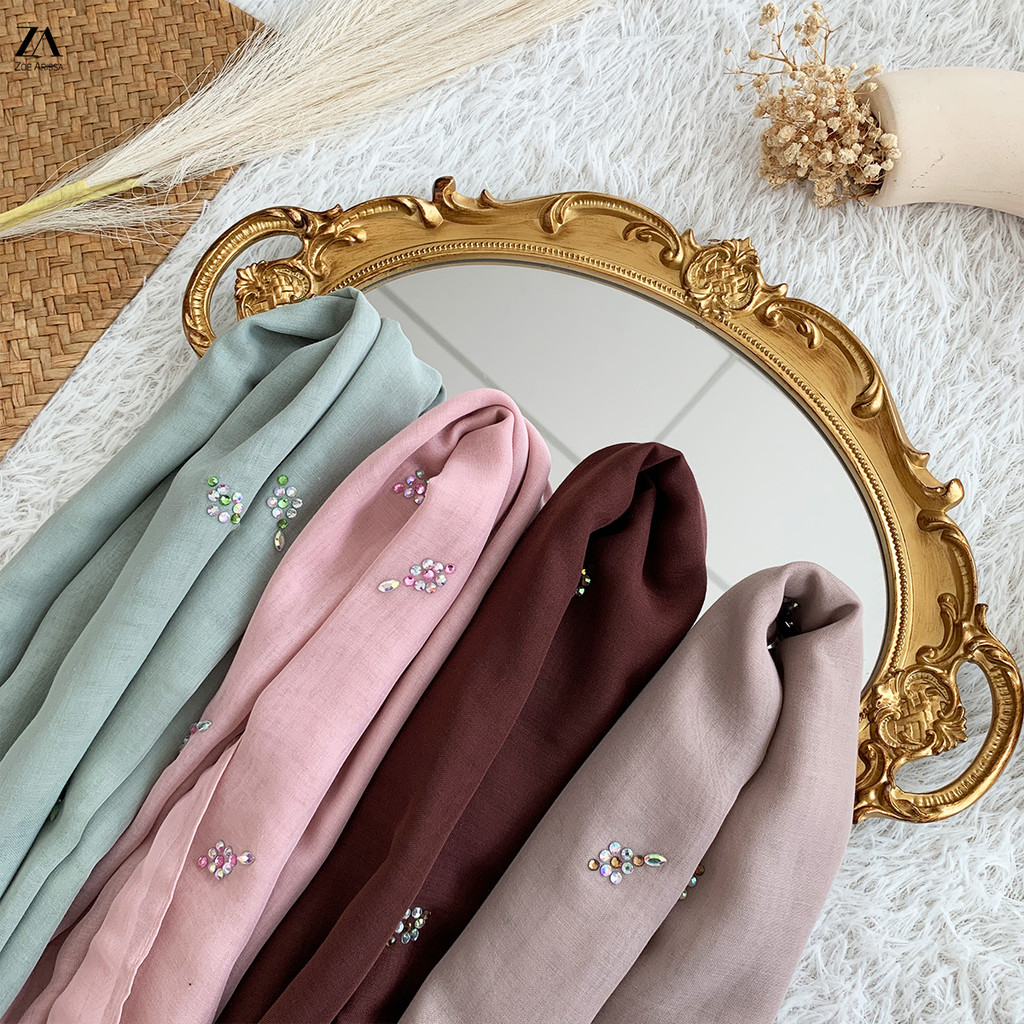 ZOE ARISAH Syerilla Sevilea ลูกปัด Hijab Tudung BIdang 45 ผ้าฝ้ายญี่ปุ่น Bawal Manik Batu Diamond Crystal ใหม่ ZOE ARISSA