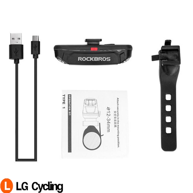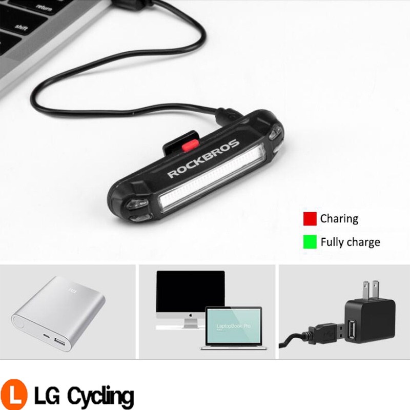 RockBros ไฟท้ายจักรยานด้านหลังชาร์จ USB Super Bright LED ไฟท้ายไฟเตือนขี่กลางคืนไฟจักรยาน