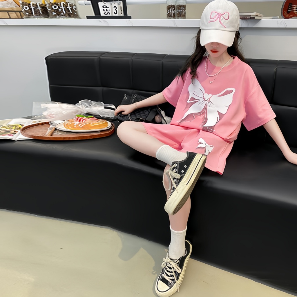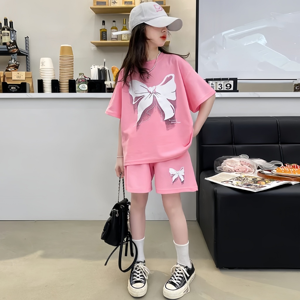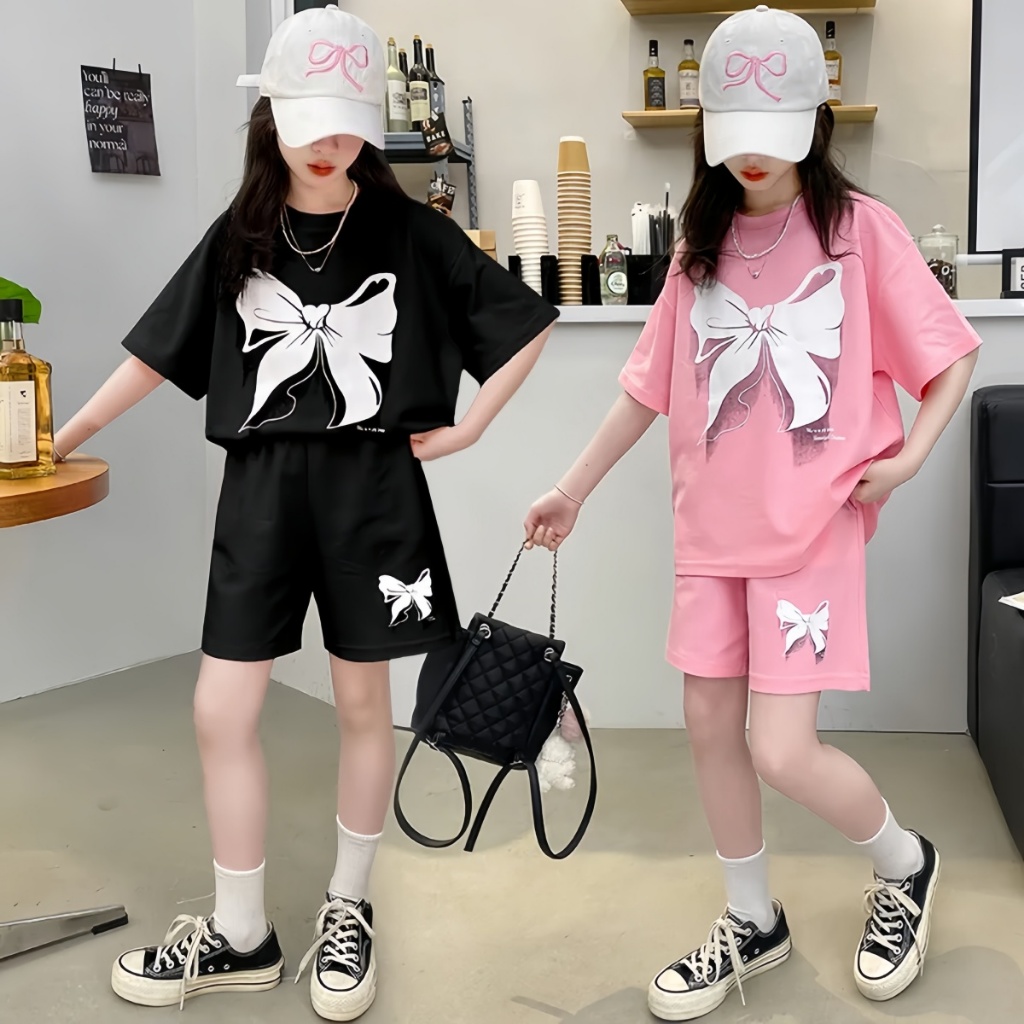 SweetKids พร้อมส่งจากกทม🌸ชุดเซ็ทเด็กผู้หญิง แฟชั่น🍓เสื้อแขนสั้นกางเกงขาสั้นลายโบว์ ลําลอง หวานและเย็นสบาย ฤดูร้ อน