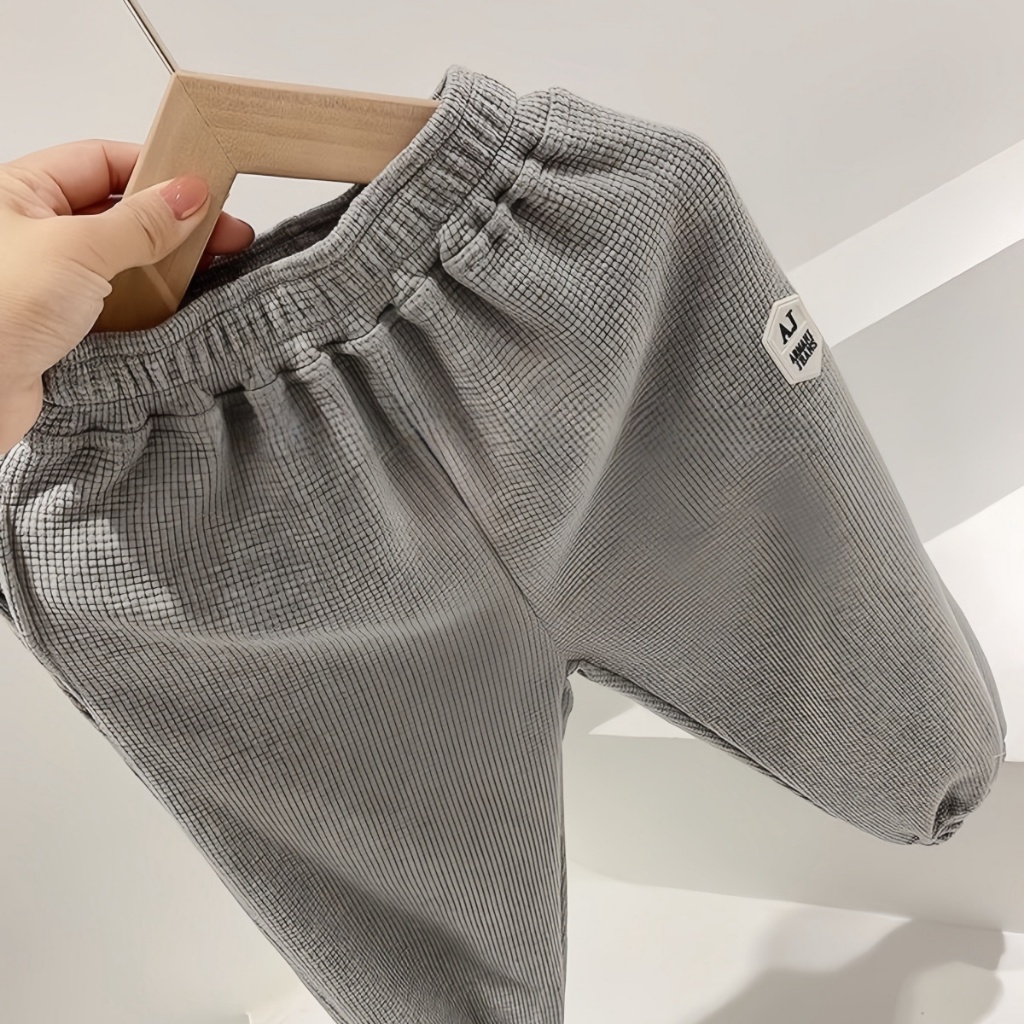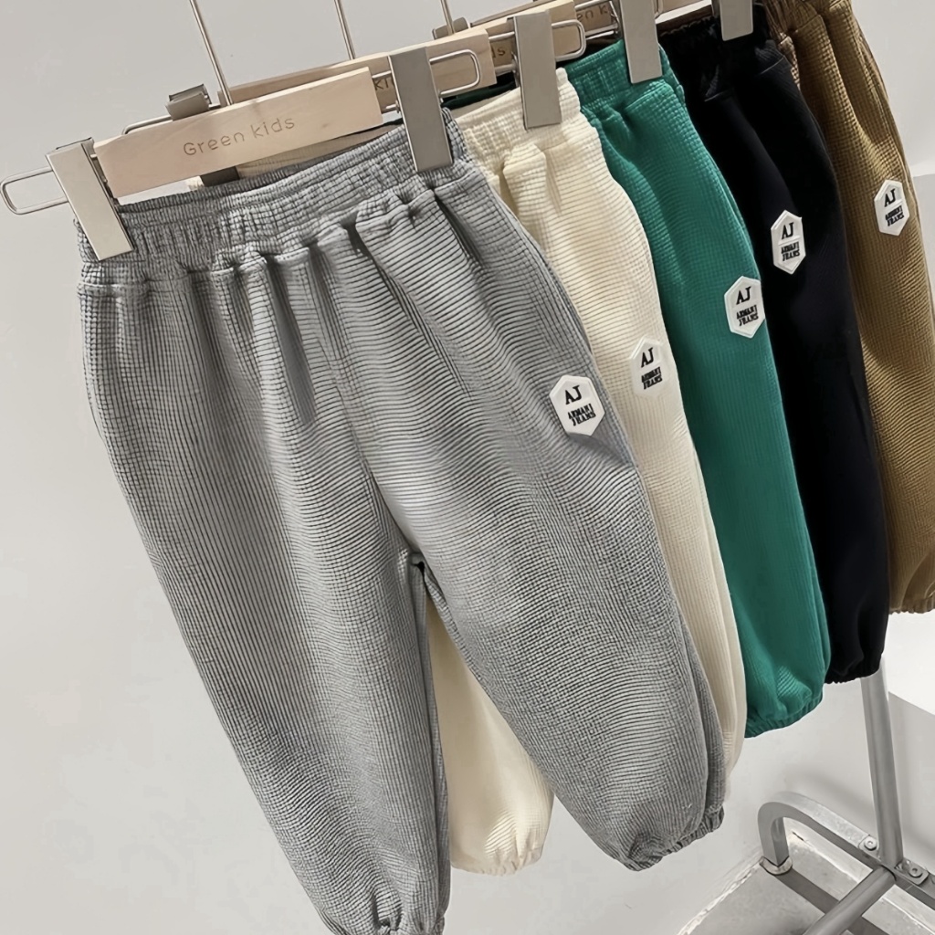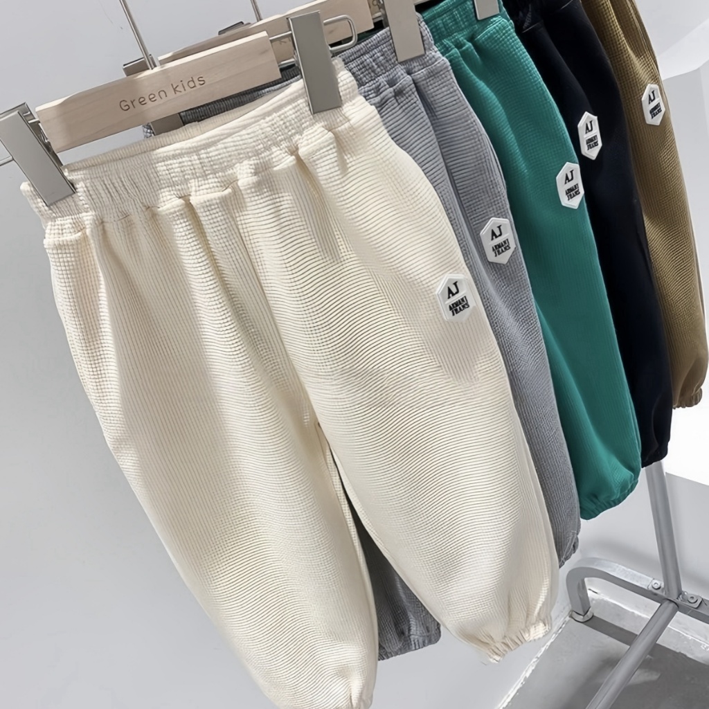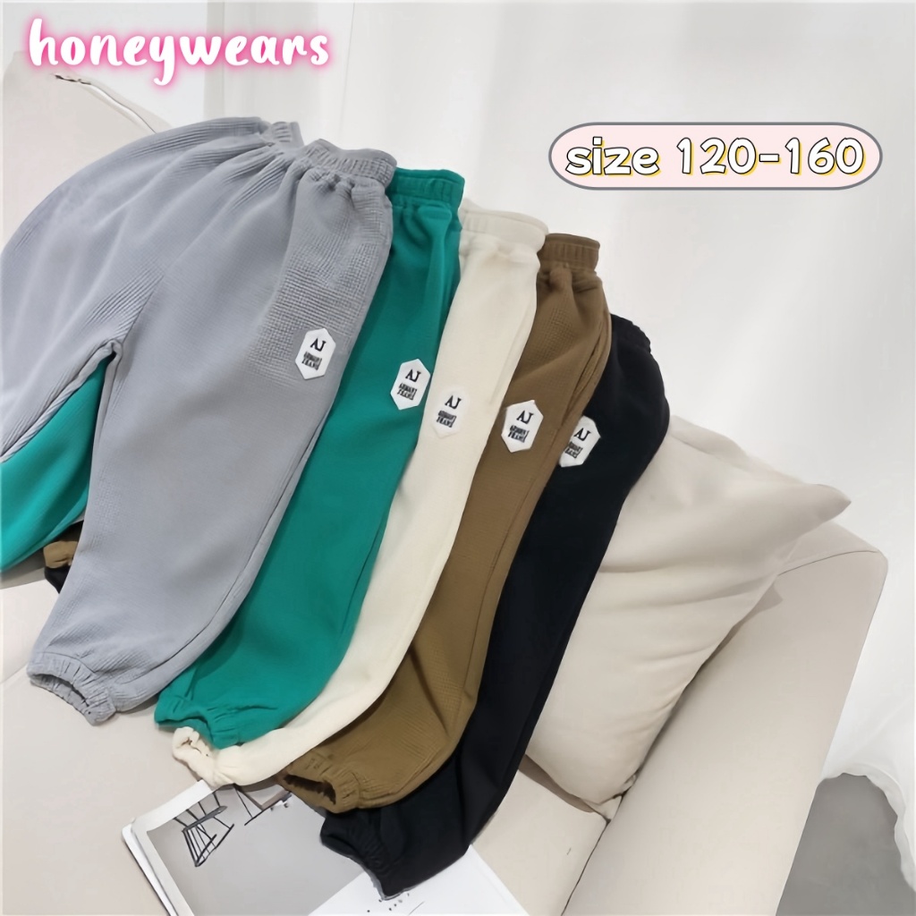 honeywears⚡️พร้อมส่ง⚡️กางเกงรัดเท้าเด็กชาย ขายาวลำลอง เอวยางยืด ผ้าวาฟเฟิล สไตล์เกาหลี แฟชั่นฤดูร้อน ไซส์ 120-160