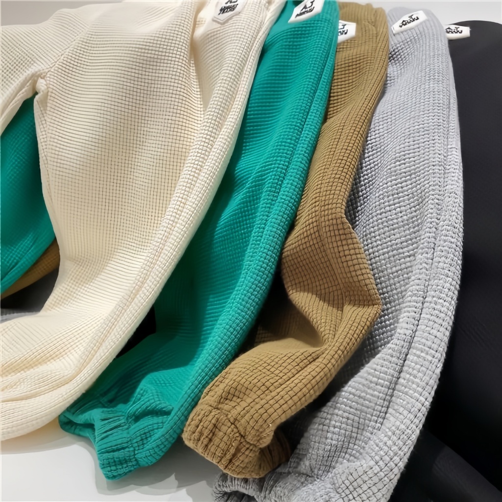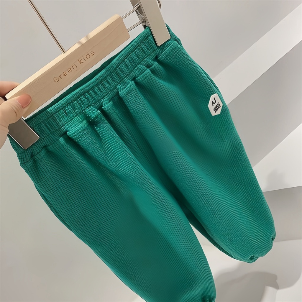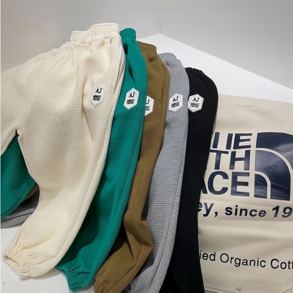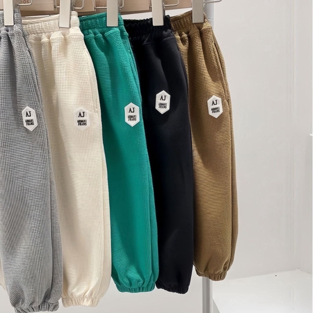 honeywears⚡️พร้อมส่ง⚡️กางเกงรัดเท้าเด็กชาย ขายาวลำลอง เอวยางยืด ผ้าวาฟเฟิล สไตล์เกาหลี แฟชั่นฤดูร้อน ไซส์ 120-160