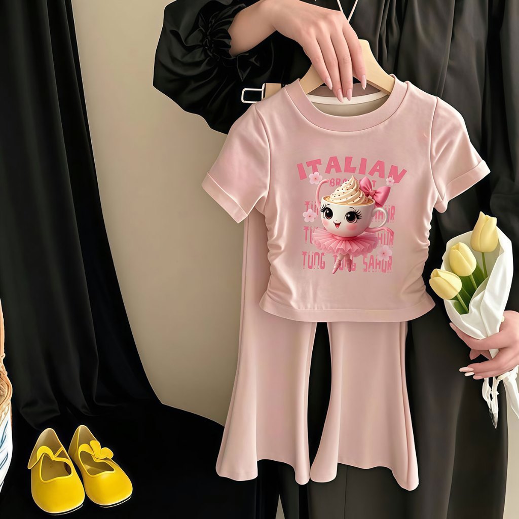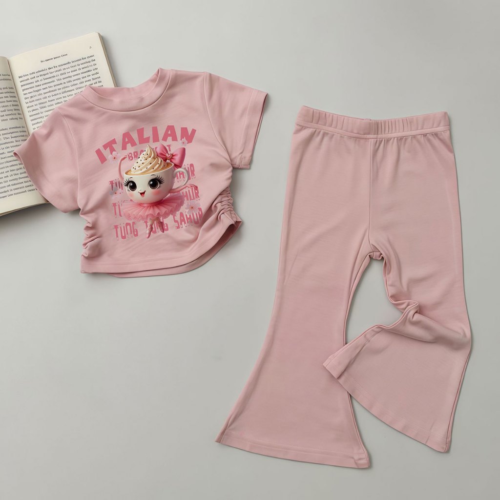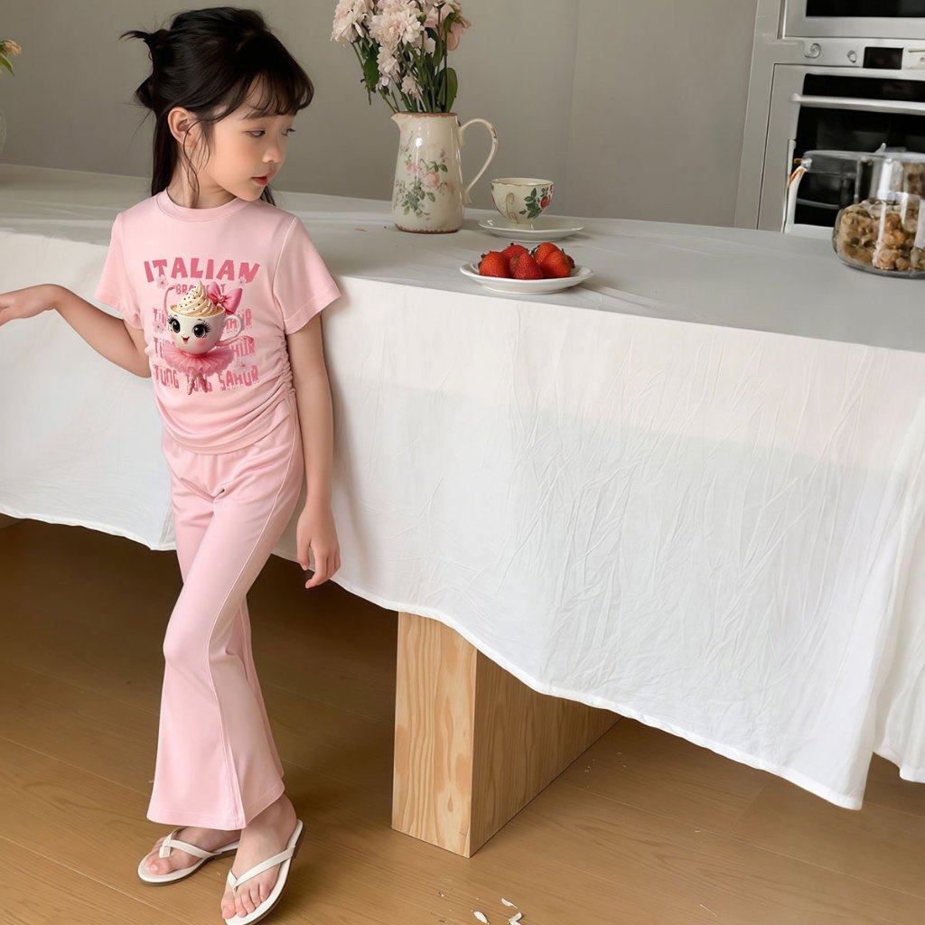 honeywears⚡พร้อมส่ง⚡ชุดสูทเด็ก ชุดเสื้อสีชมพู+กางเกงขายาว สไตล์เกาหลี รูปแบบการ์ตูนแฟชั่น เนื้อผ้าใส่สบาย สำหรับเด็กผู้หญิง ไซส์ 110-150