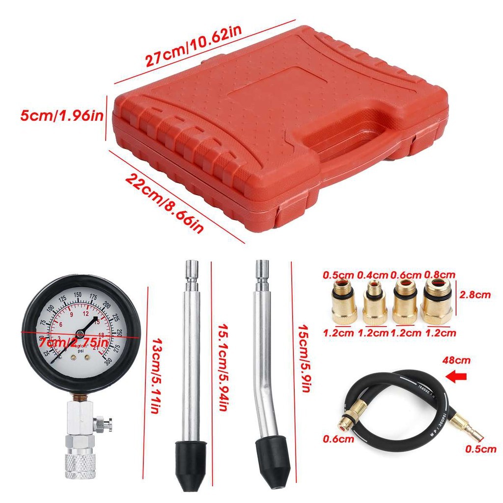 เครื่องวัดกำลังอัดเบนซิน เครื่องวัดความดัน เครื่องยนต์เบนซินชุดชุดเครื่องมือคอมเพรสเซอร์วินิจฉัยการรั่ว