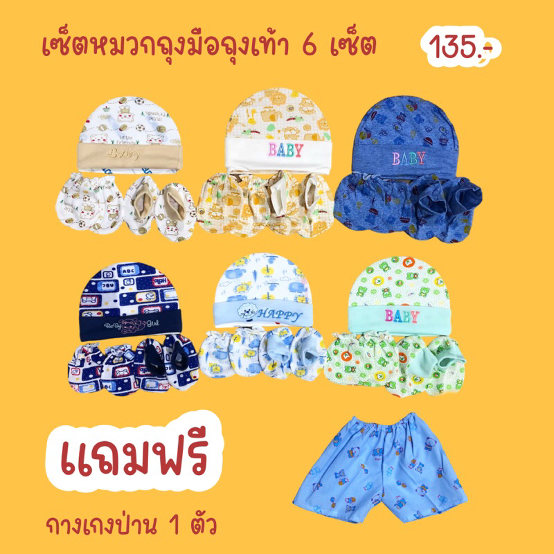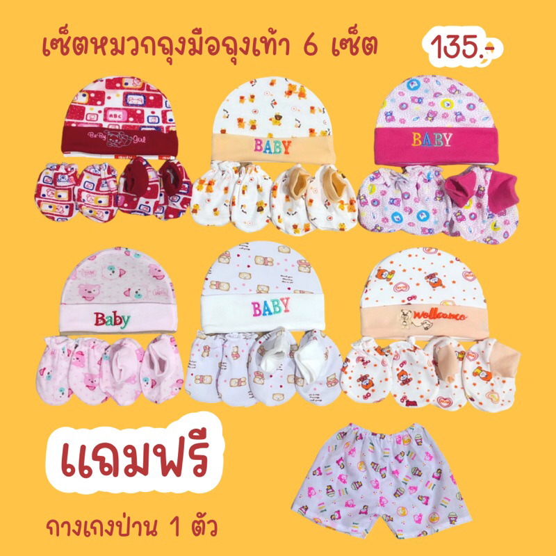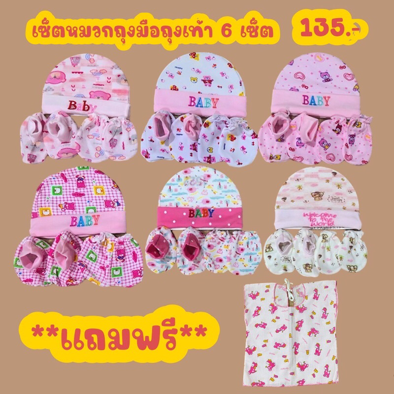 **6เซ็ต เซ็ตหมวก ถุงมือ ถุงเท้า มีของแถมเลือกได้เลยจ้า คละลาย **