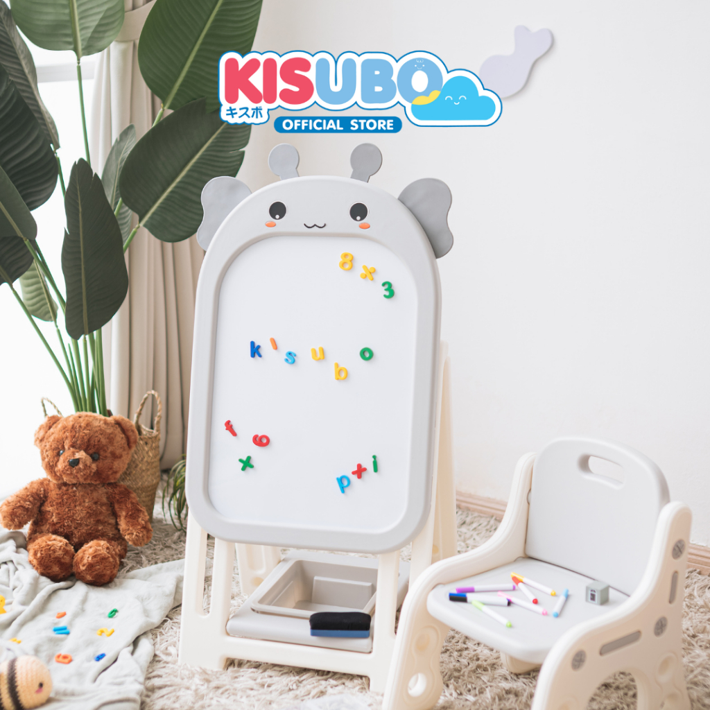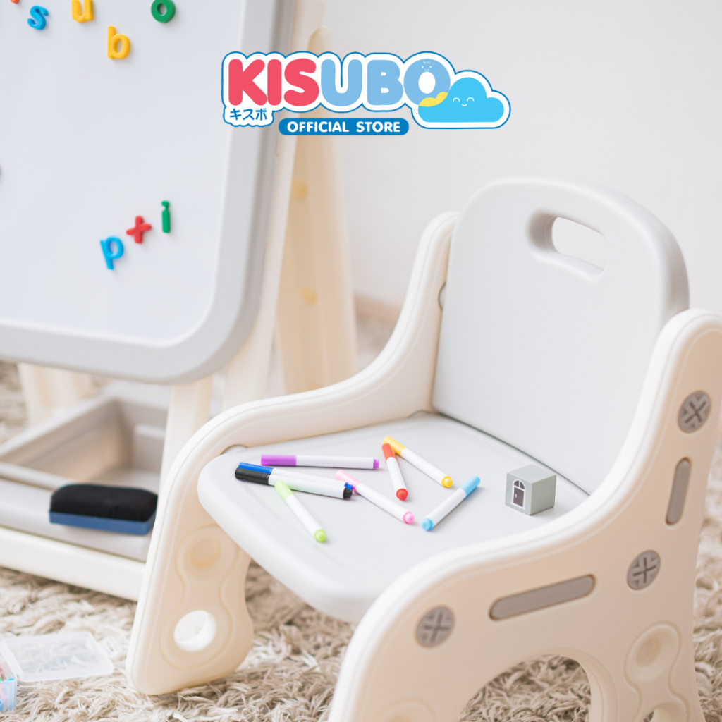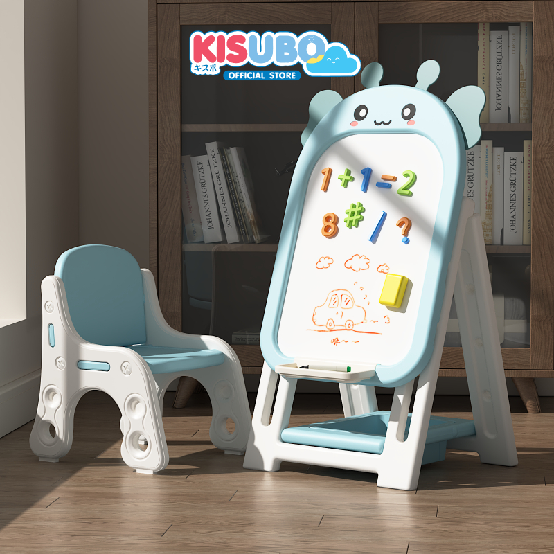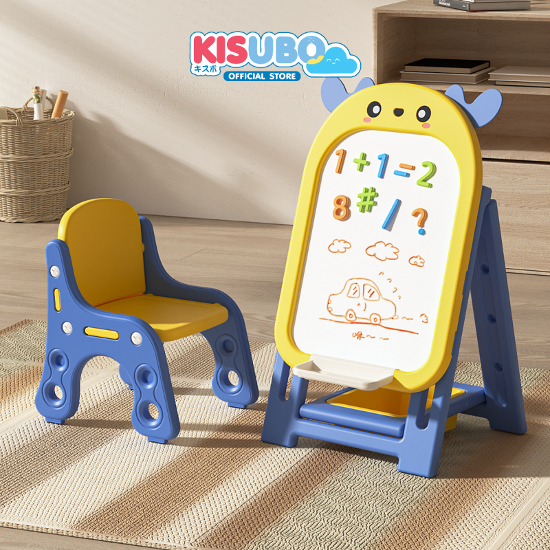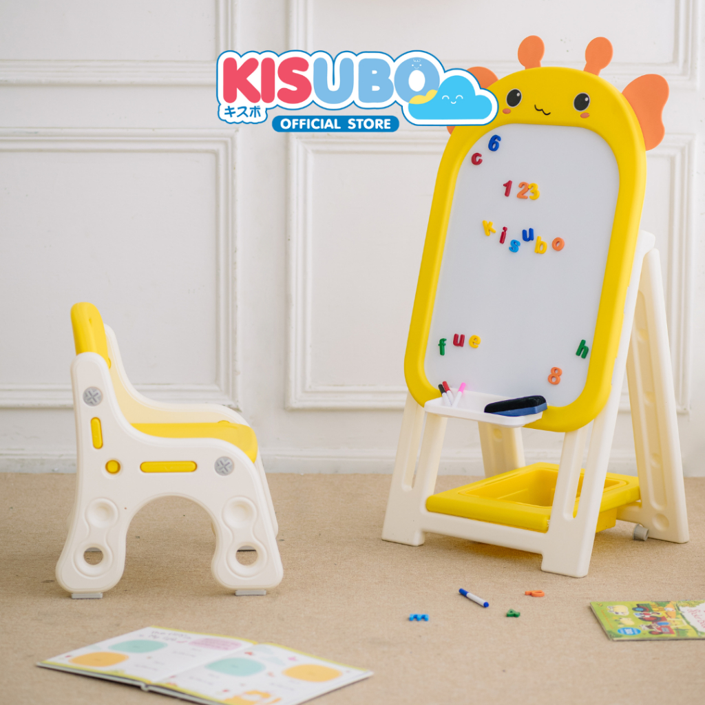 KISUBO กระดานไวท์บอร์ด แม่เหล็ก 44-94cm Kids Whiteboard Set พร้อมเก้าอี้ พับเก็บได้ ปลอดภัย