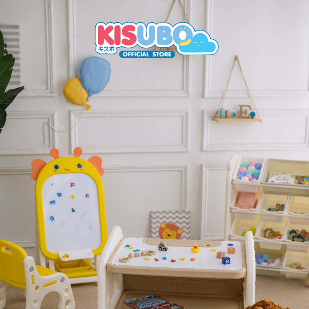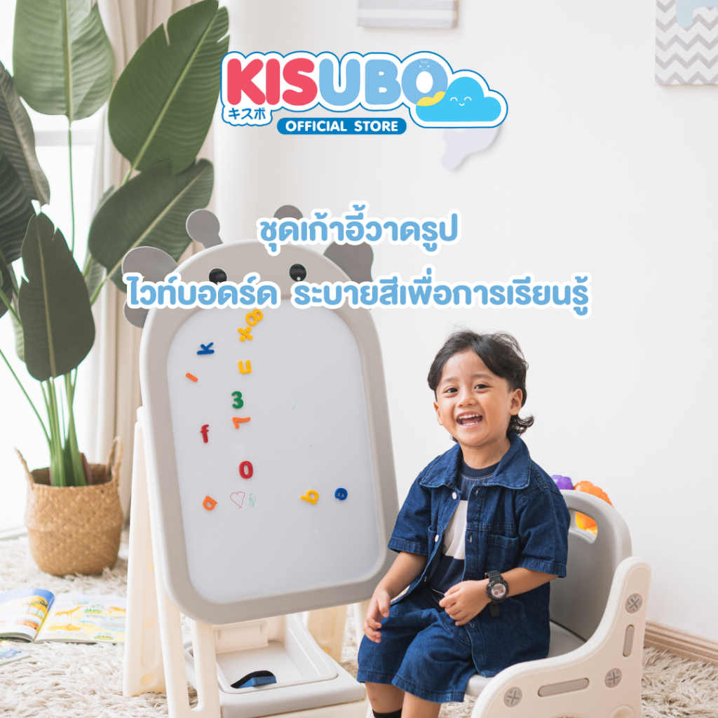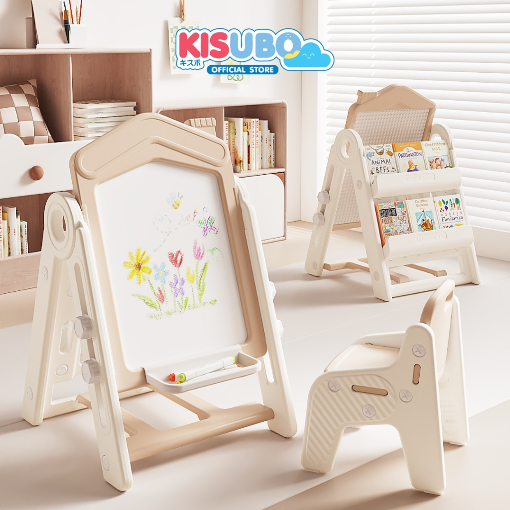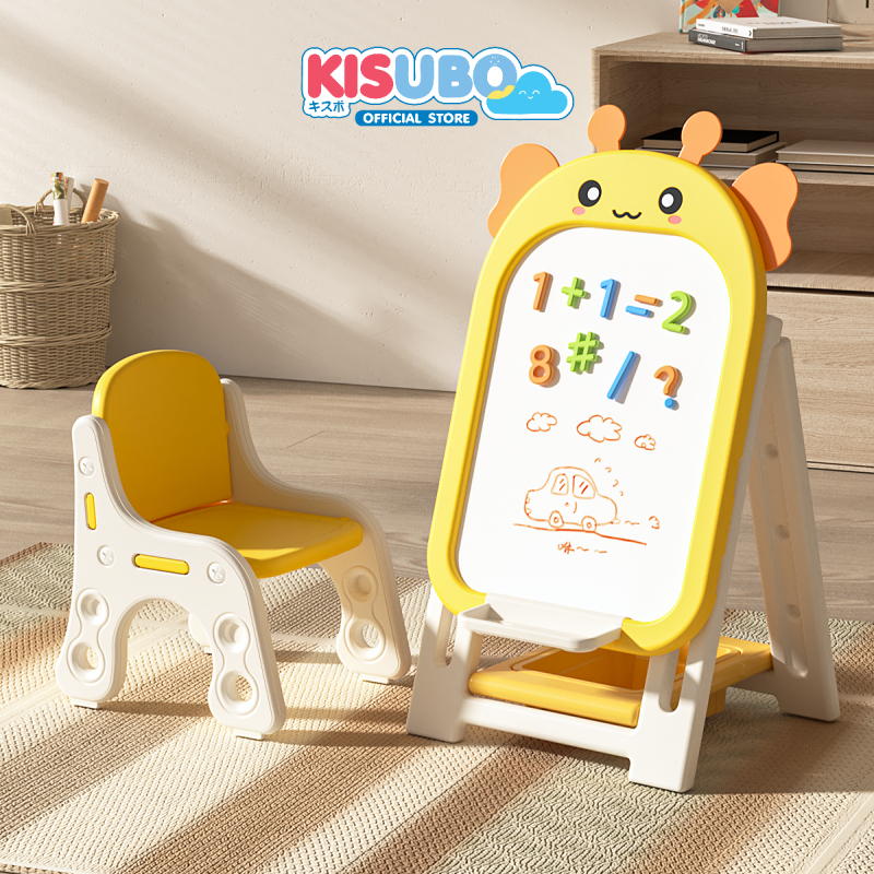 KISUBO กระดานไวท์บอร์ด แม่เหล็ก 44-94cm Kids Whiteboard Set พร้อมเก้าอี้ พับเก็บได้ ปลอดภัย