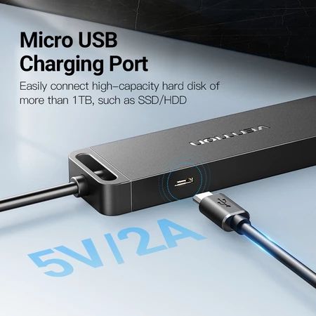 Vention ฮับ USB 3.0 แบบ 4 พอร์ต ความเร็วสูง พอร์ตแยก USB พกพา ใช้งานร่วมกับโน้ตบุ๊กและ PS4