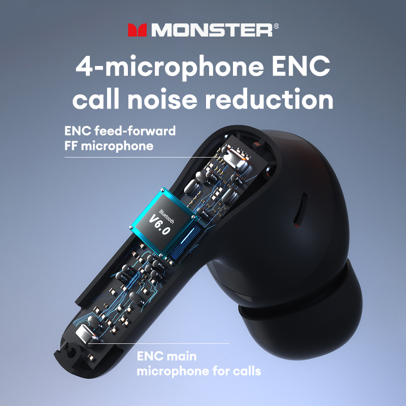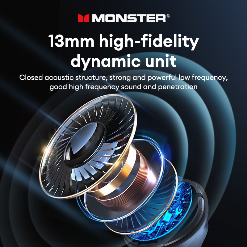Monster D02 หูฟังบลูทูธ AI Noise Cancelling HIFI ชุดหูฟัง Panoramic Acoustics & หูฟังไร้สายแบตเตอรี่ยาวนานเป็นพิเศษ