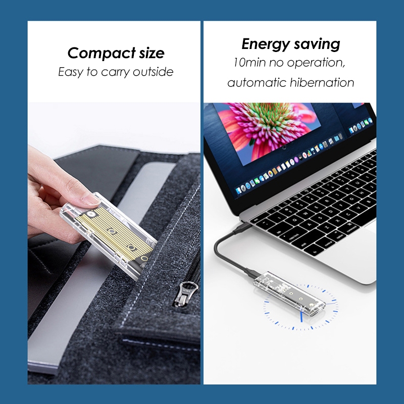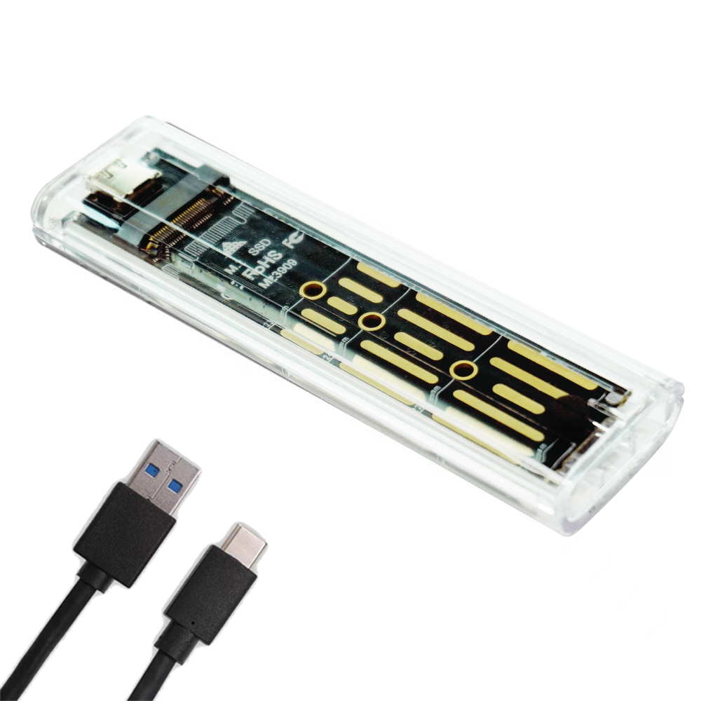 M.2 NVMe SSD ฮาร์ดไดรฟ์โปร่งใสกล่องภายนอก NGFF Dual Protocol Solid State Drive