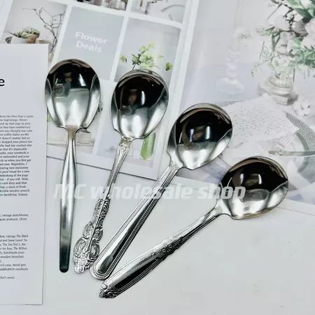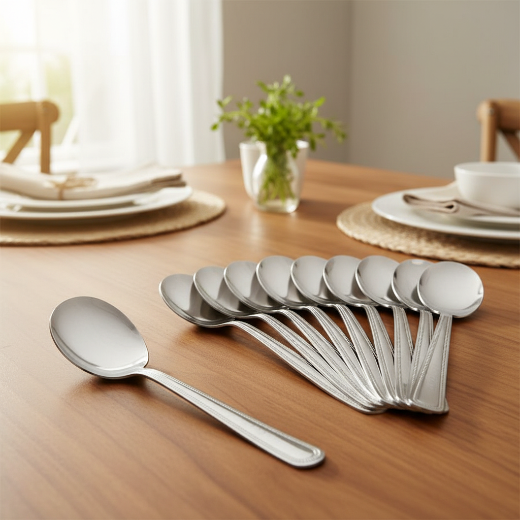 ชุดช้อนเสิร์ฟสแตนเลส 12 ชิ้น/6 ชิ้น สําหรับซุปอาหารเย็น