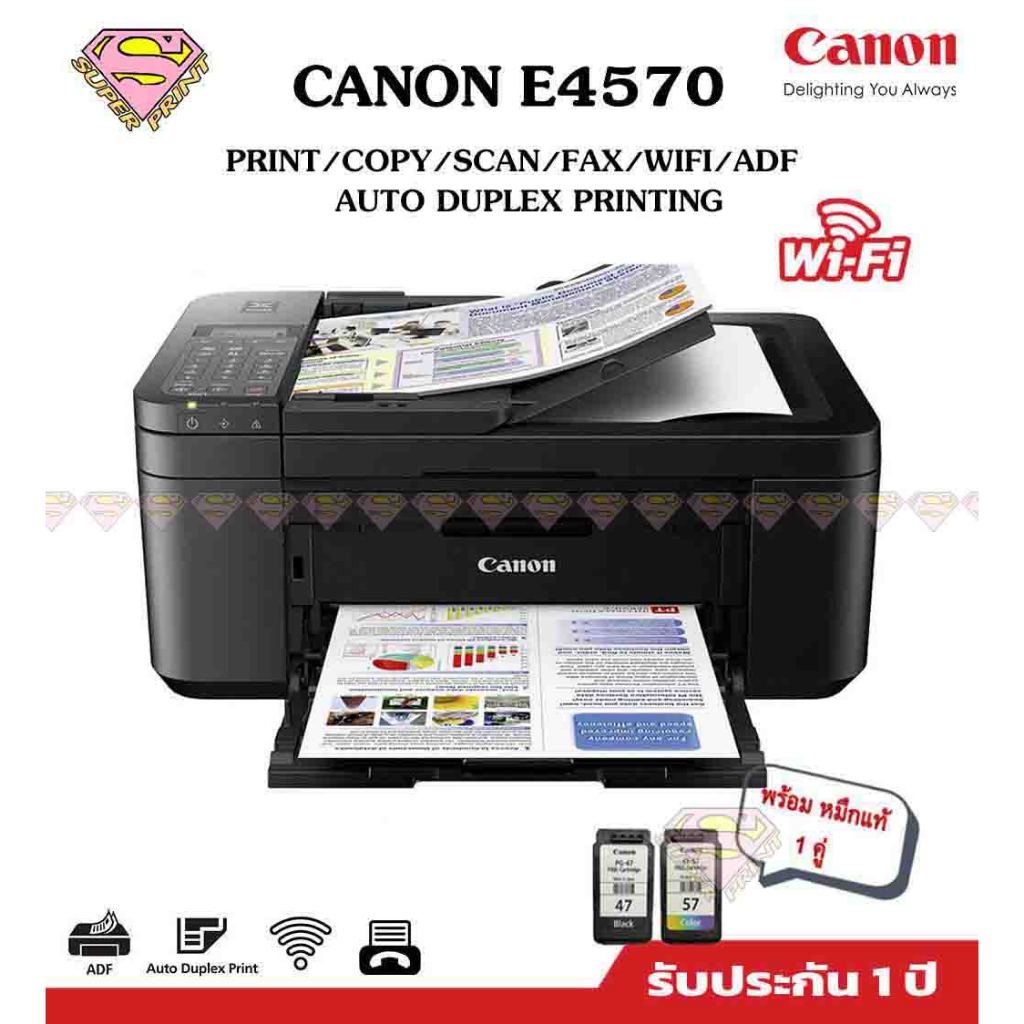 CANON E4570 พิมพ์2หน้า สแกน ถ่ายเอกสาร แฟ็ก WiFi โดยตรง หมึกตลับ (Print/Scan/Copy/WiFi/Auto Duplex Printing/Fax ADF)