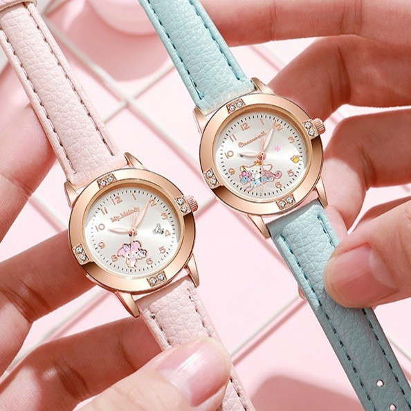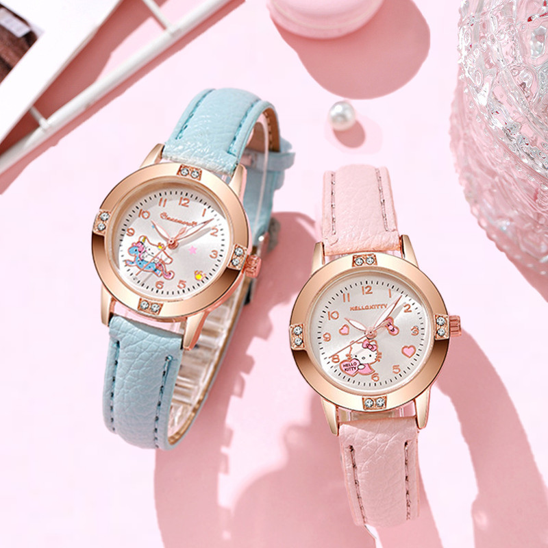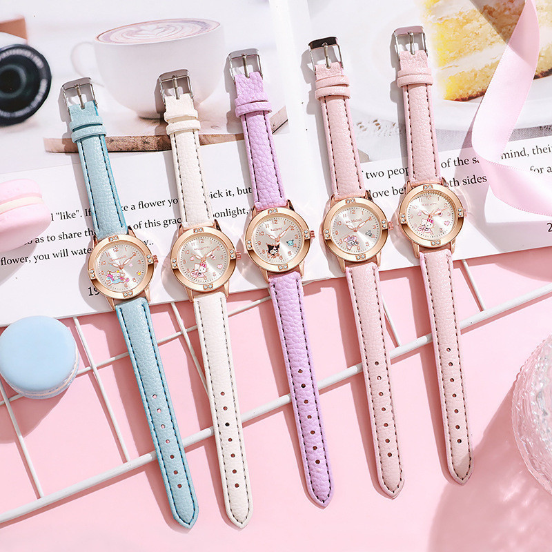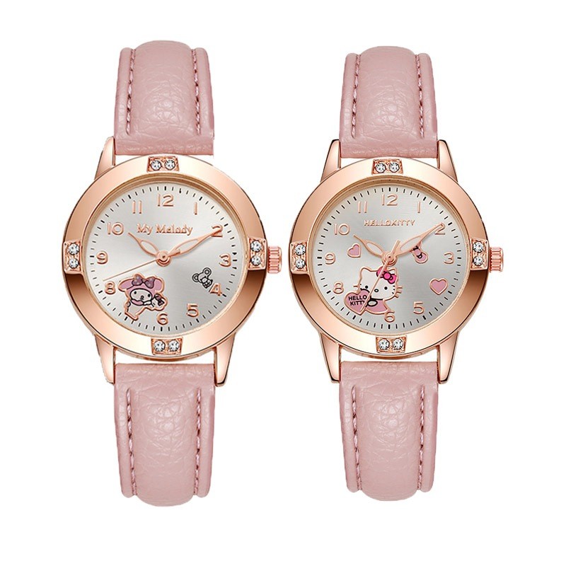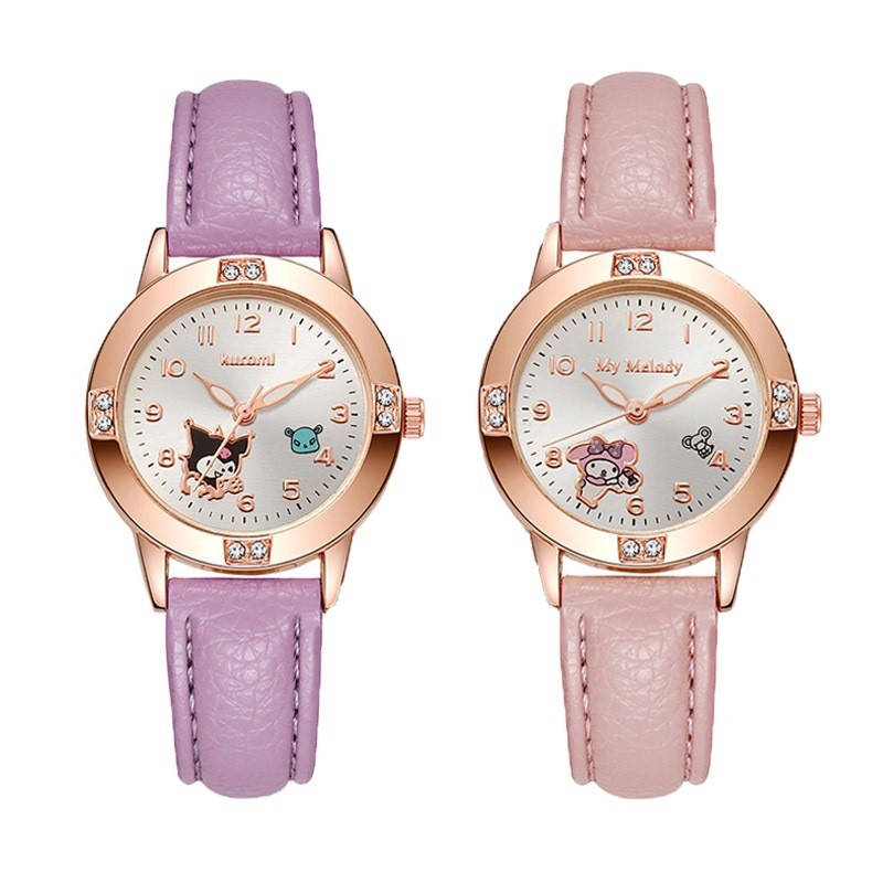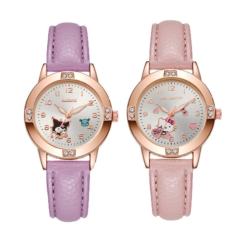 นาฬิกาข้อมือ BLESSU Hello Kitty & Kuromi แบบควอตซ์ สายPU สไตล์คลาสสิก เหมาะสำหรับนักเรียนหญิง