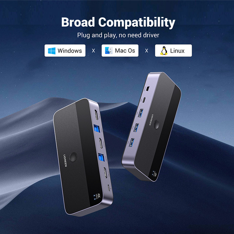 UGREEN กล่องสวิตช์ HDMI 2.0 KVM 4K60Hz 2 IN 1 OUT Ultra HD HDMI สําหรับแชร์จอภาพ