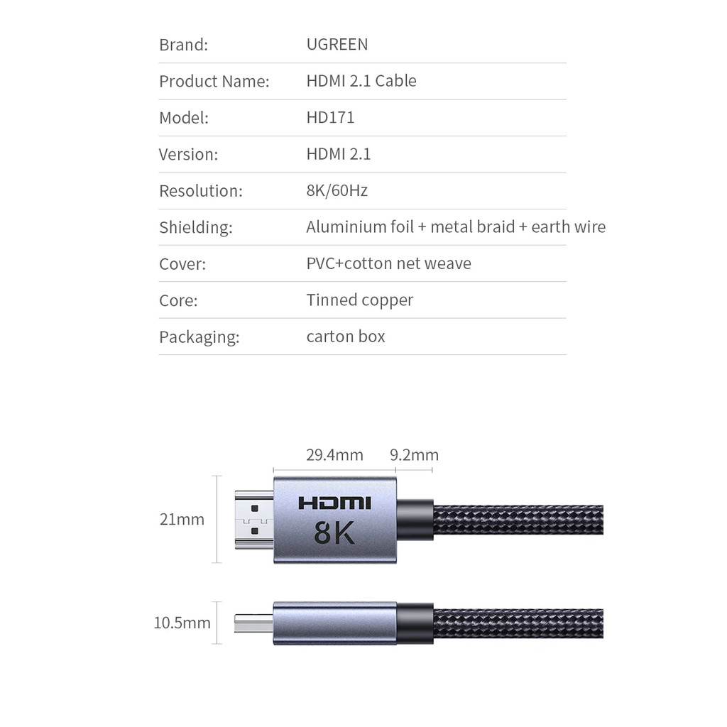UGREEN สาย HDMI 8K/60Hz สําหรับ PS5 Xiaomi TV Box ความเร็วสูงพิเศษได้รับการรับรอง 8K @ 60Hz สาย 48Gbps Dolby Vision HDCP2.3