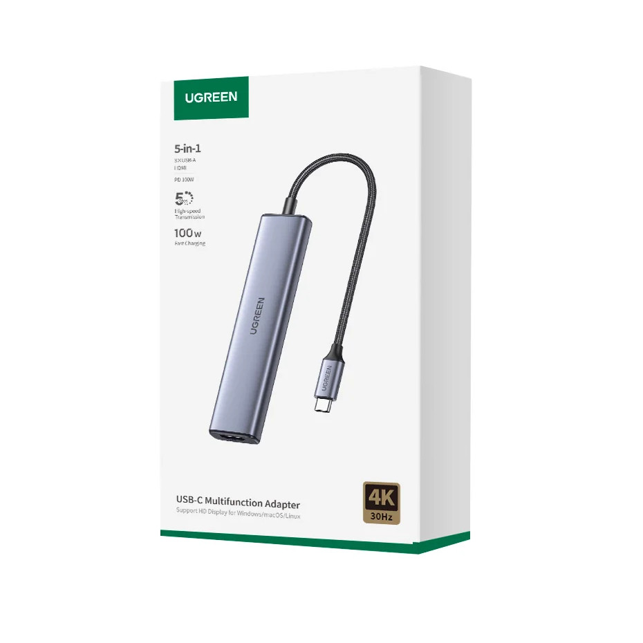 UGREEN 5 in 1 USB C Hub 4K HDMI USB HUB 100W Multiport Adapter สําหรับ MacBook Pro/Air, iPad Pro, iMac, iPhone 15 Pro/Pro Max, XPS