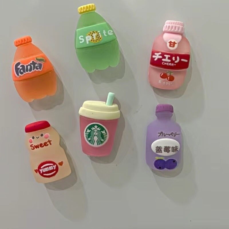 [100 ชิ้นในสต็อก] ขวดเครื่องดื่มใหม่สีน้ำเงินเบอร์รี่กาแฟสไปรท์ แม่เหล็กติดตู้เย็น เรซิน สติ๊กเกอร์ถ้วย อุปกรณ์เสริมน่ารัก ป้าย