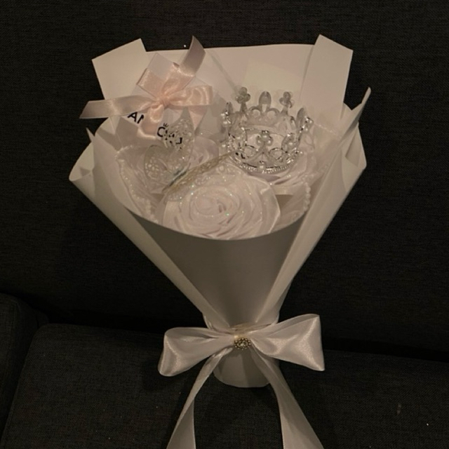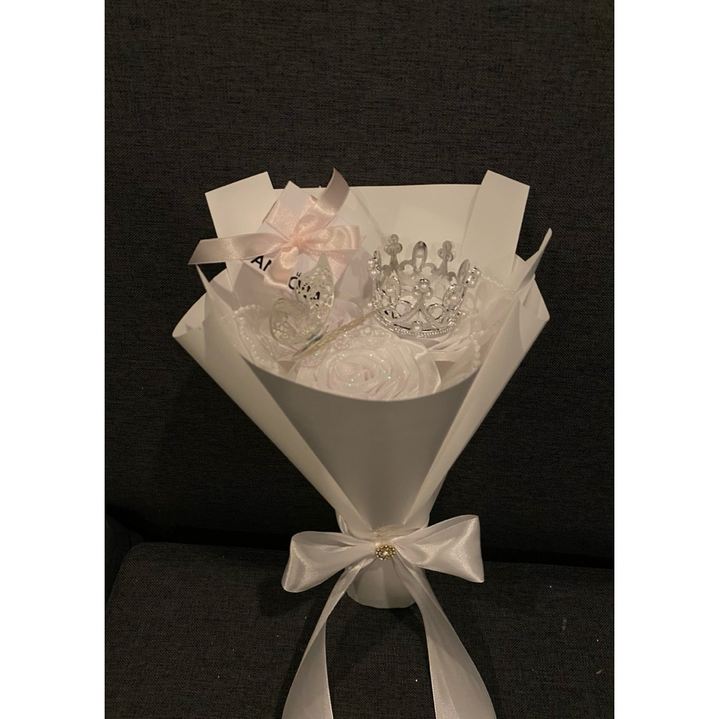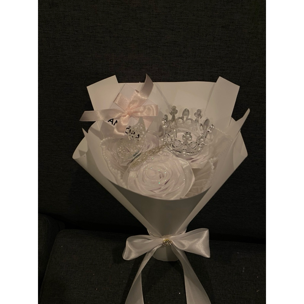 ช่อดอกกุหลาบกลิตเตอร์ 3 ดอก สีขาวมีหลายสี แถมมงกุฎ ผีเสื้อ ของขวัญครบครอบ