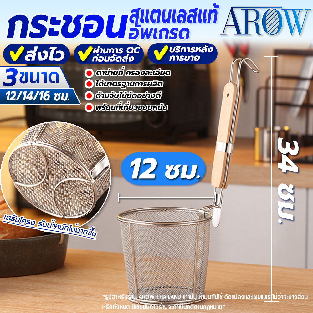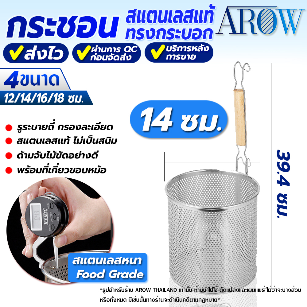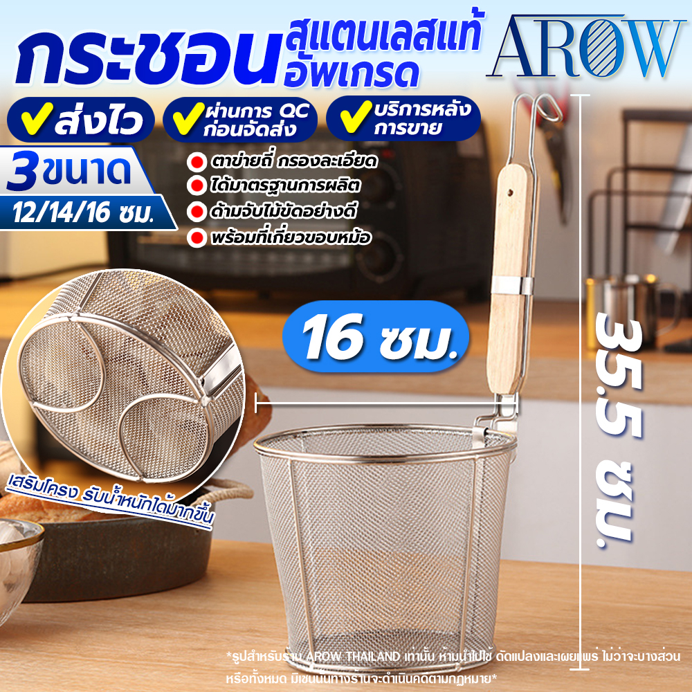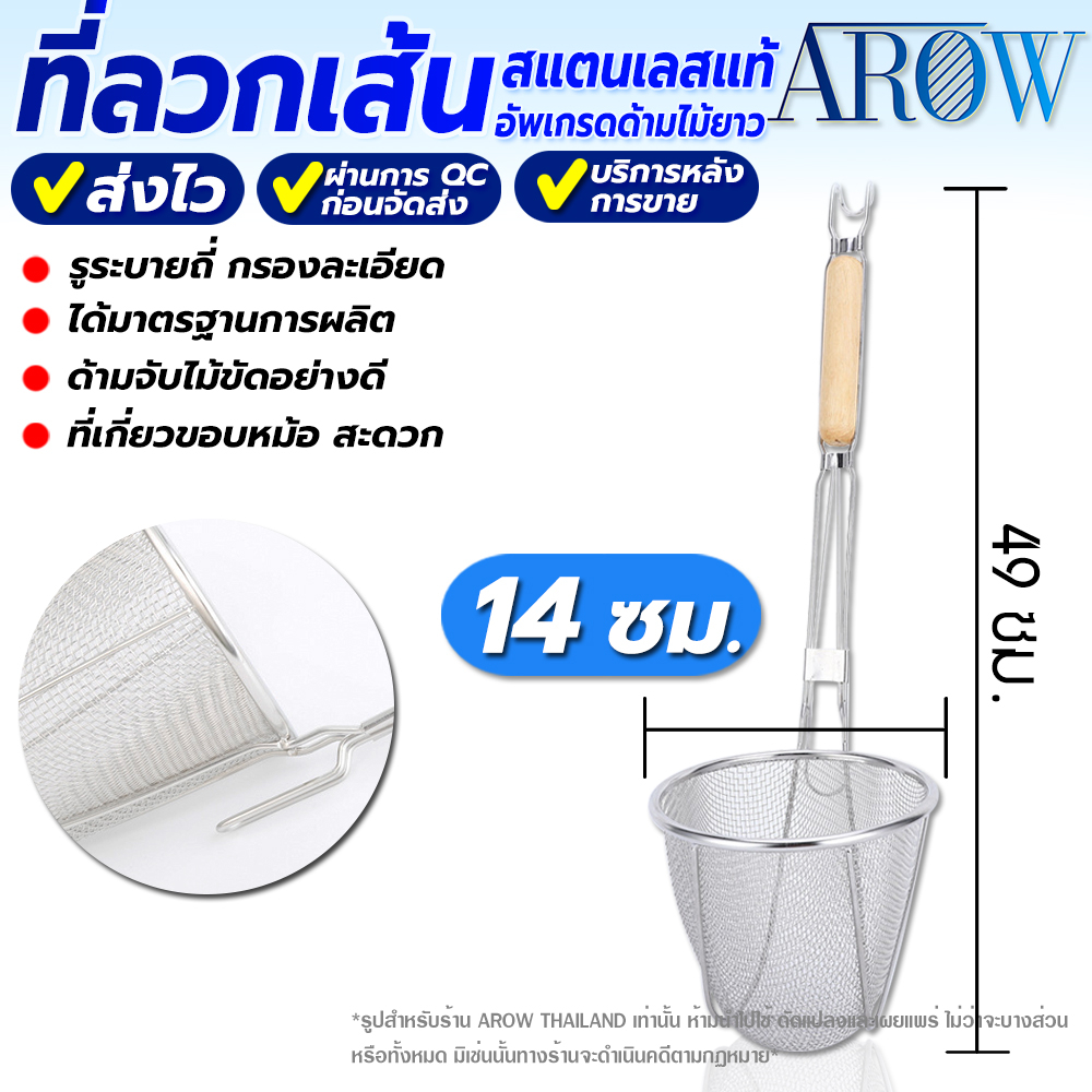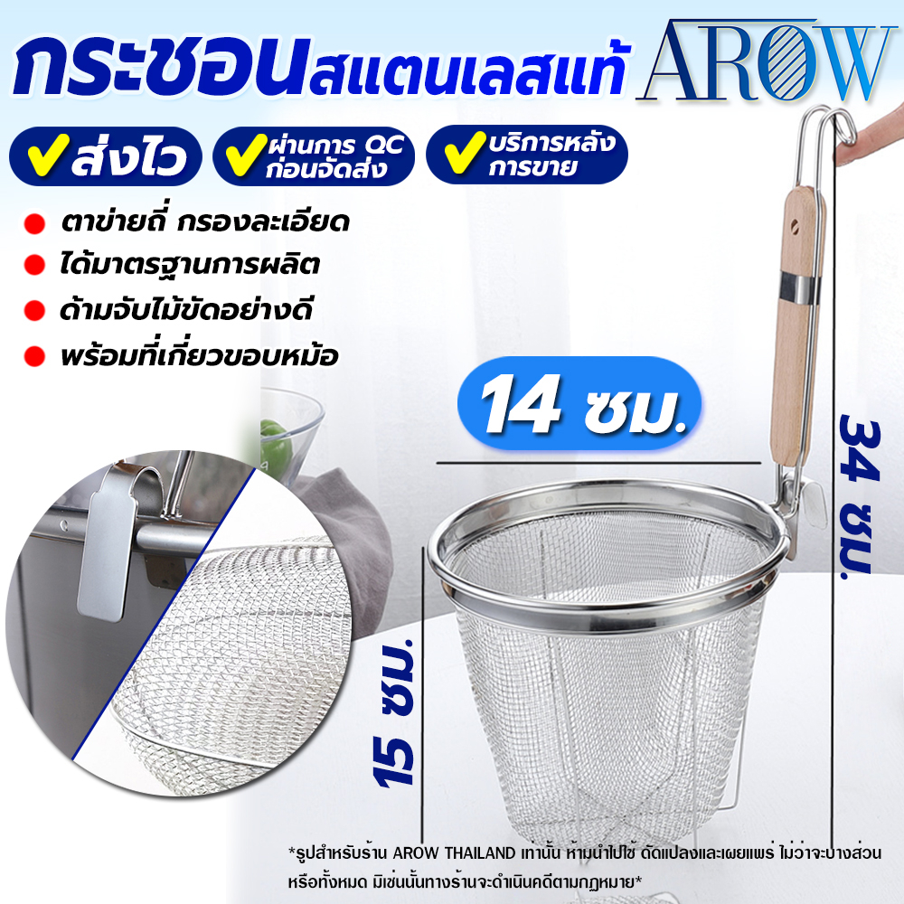 (พร้อมส่ง) กระชอนลวกเส้นสแตนเลสแท้ 304 ขนาด 14 ซม. AROW THAILAND ตระกร้อลวกเส้น ที่ลวกอาหาร
