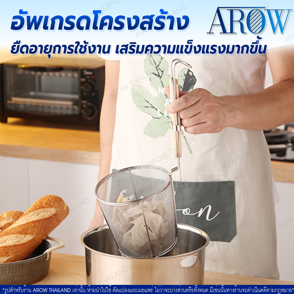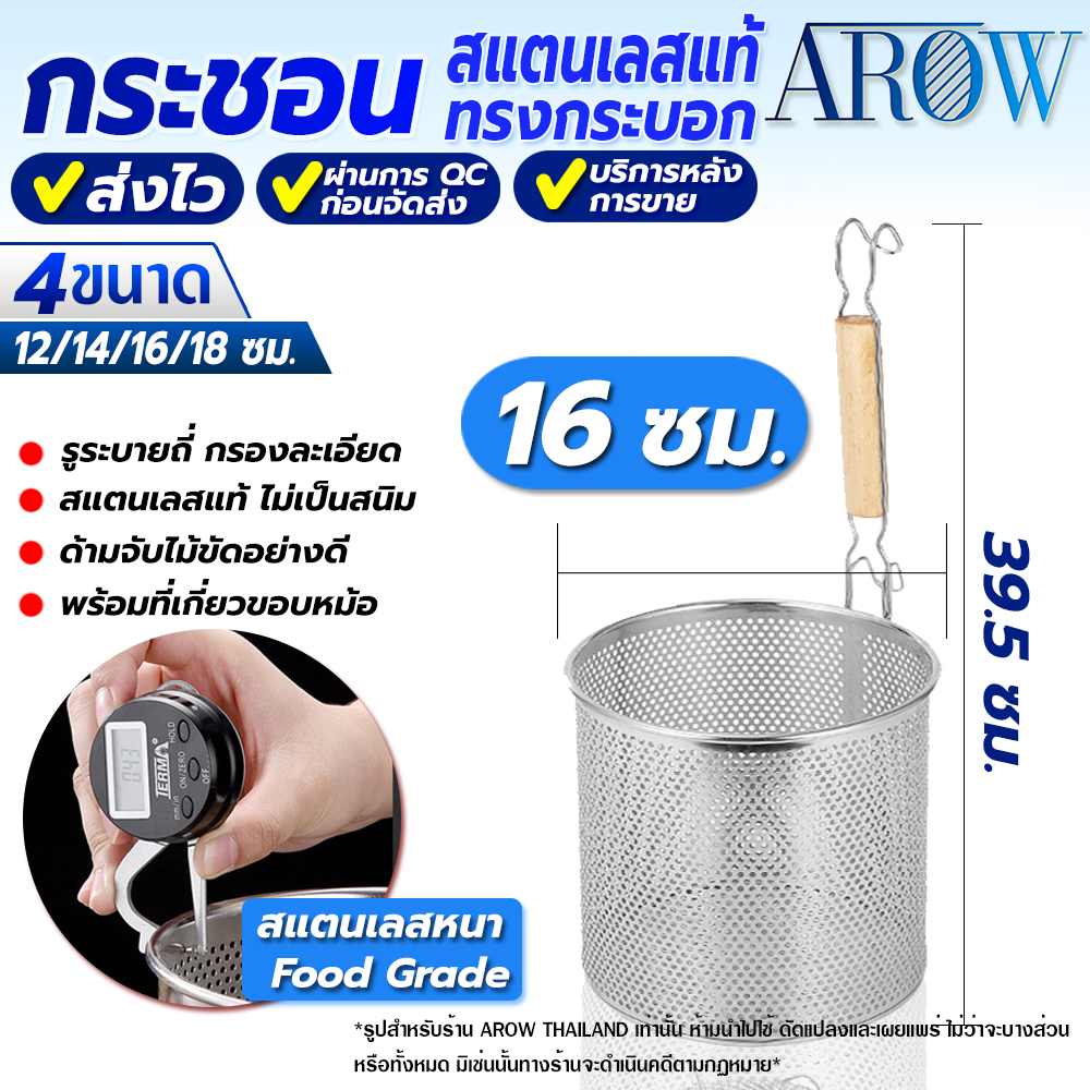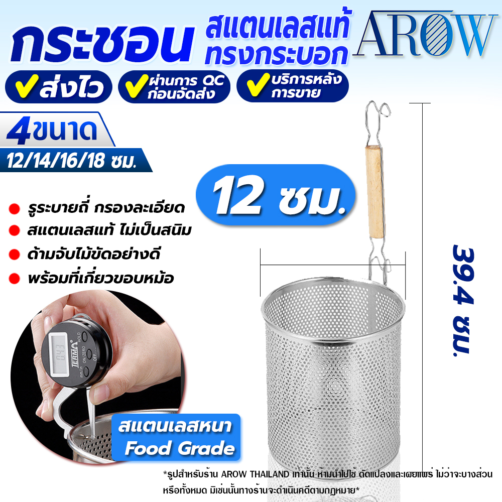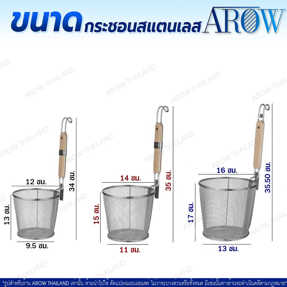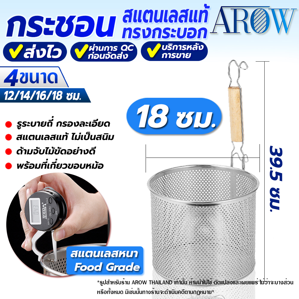 (พร้อมส่ง) กระชอนลวกเส้นสแตนเลสแท้ 304 ขนาด 14 ซม. AROW THAILAND ตระกร้อลวกเส้น ที่ลวกอาหาร