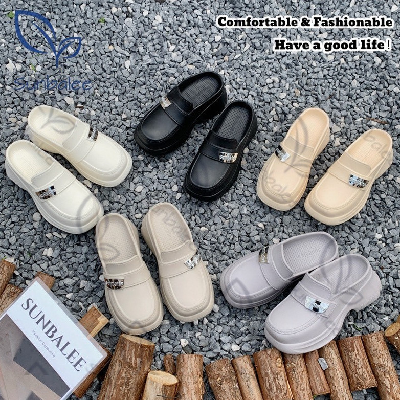SUNBALEE SUNG308 รองเท้าหัวโต แบบสวม รองเท้าเปิดส้น สูง 8 CM ทรงเท้าเรียว วัสดุ EVA สินค้าพร้อมส่ง