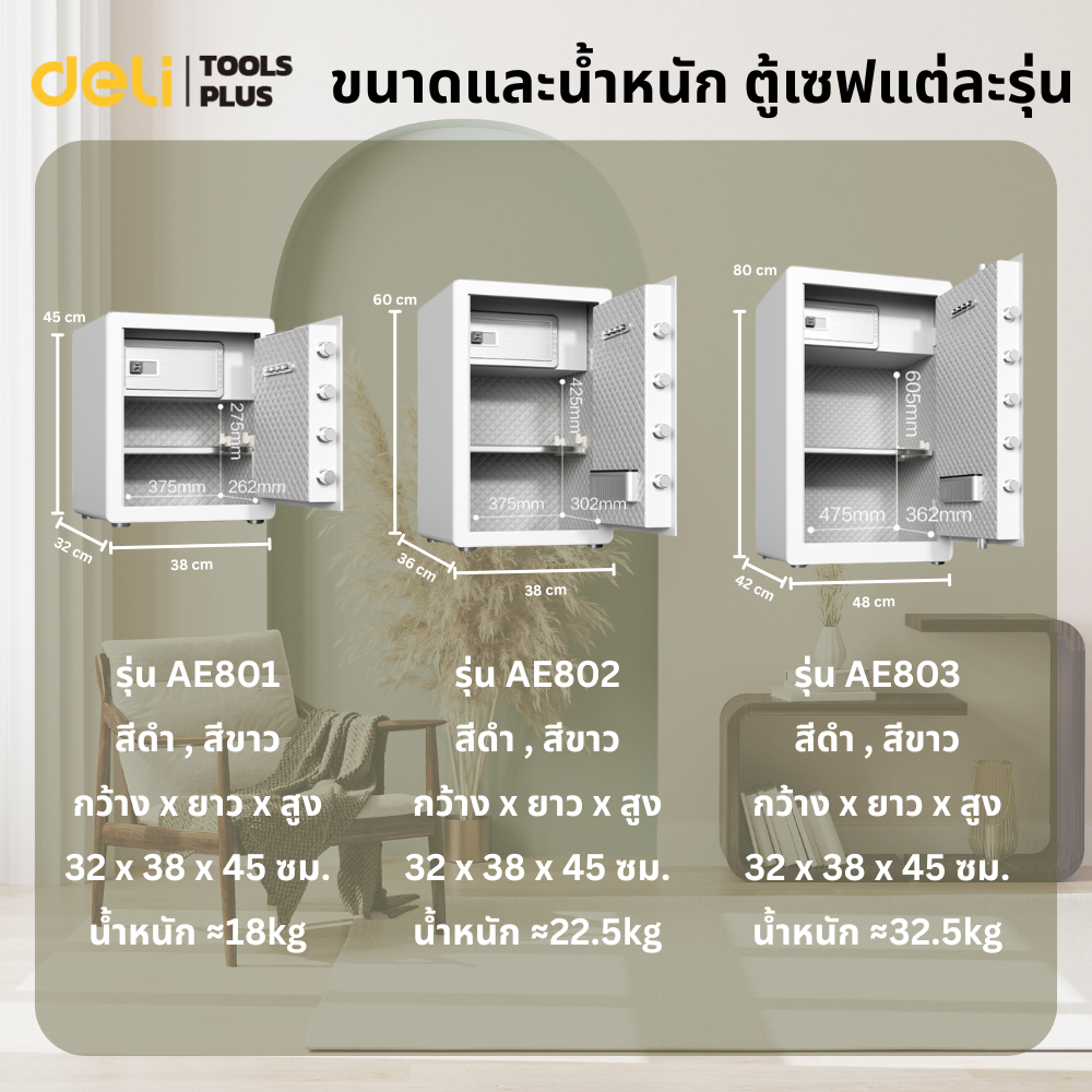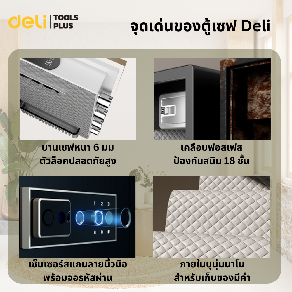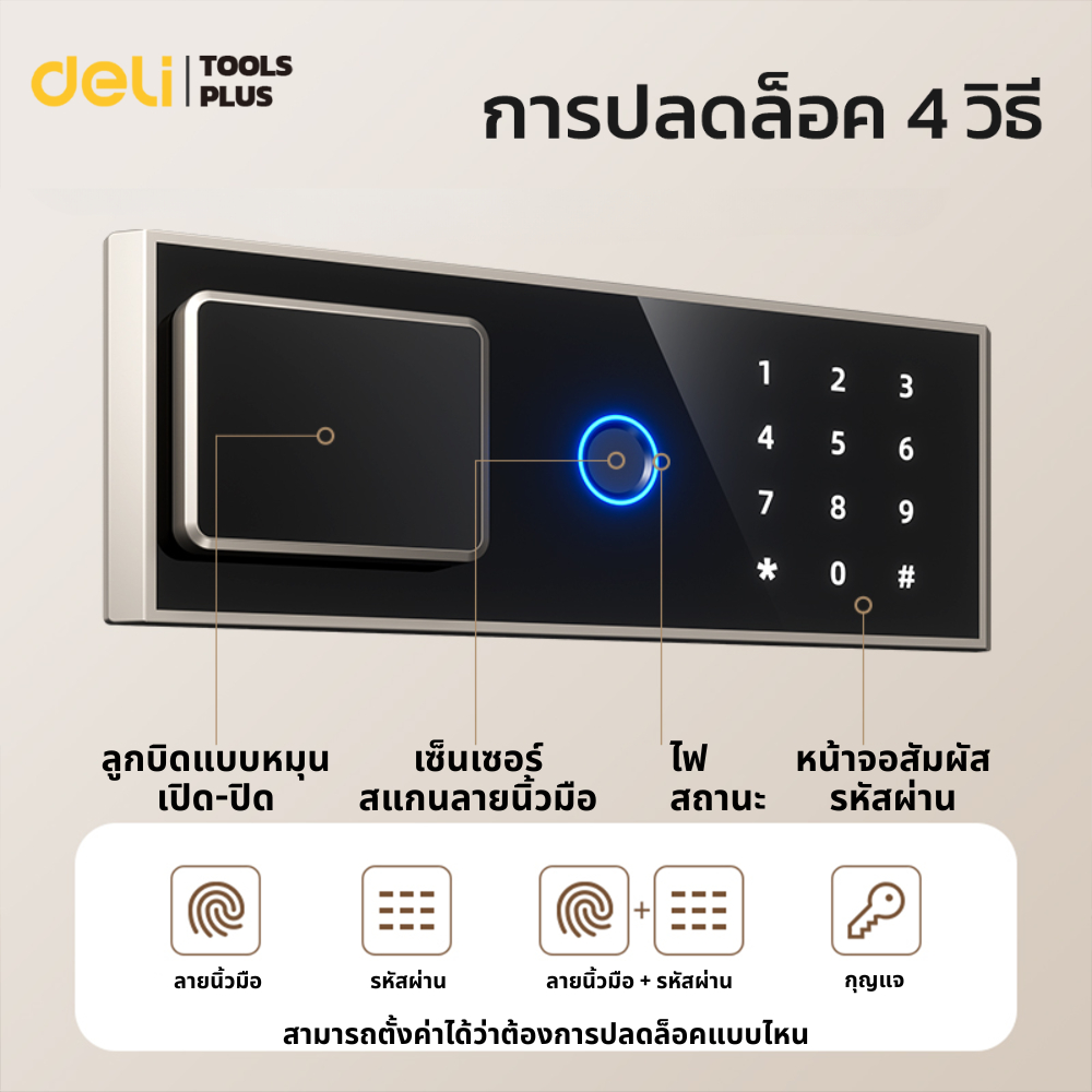 Deli ตู้เซฟนิรภัย ตู้เซฟสแกนลายนิ้วมือ ดิจิตอล ล็อค4แบบ กันขโมย กันไฟ รับประกัน 1 ปี Safe box