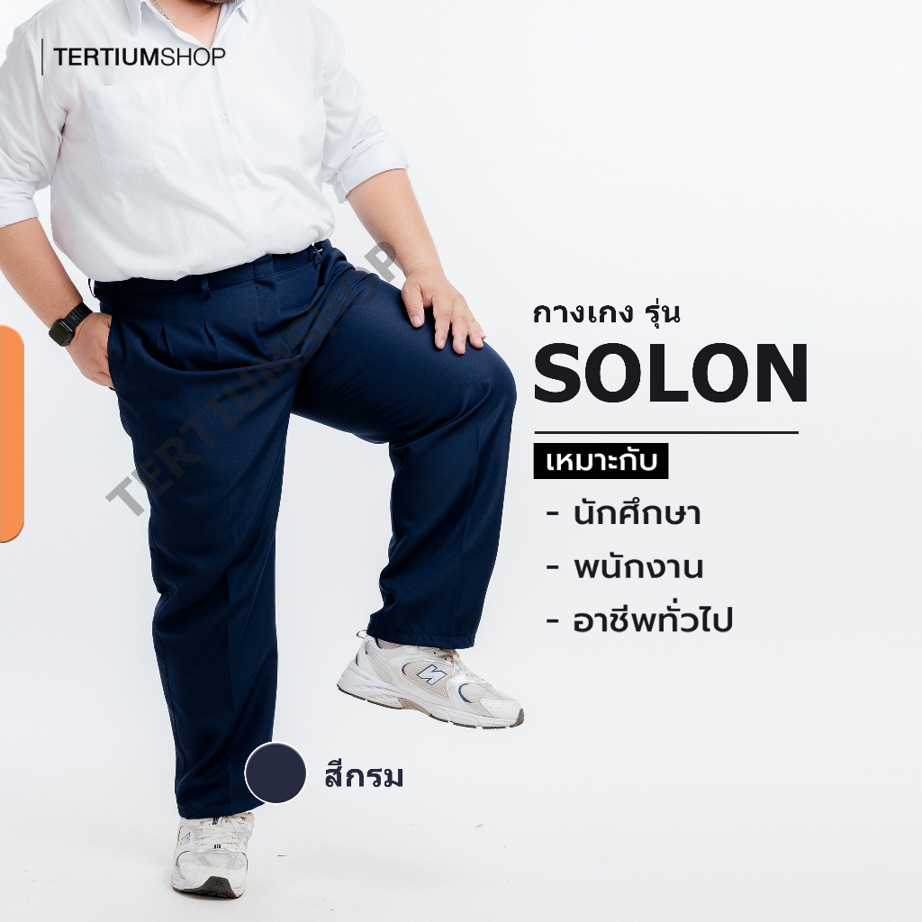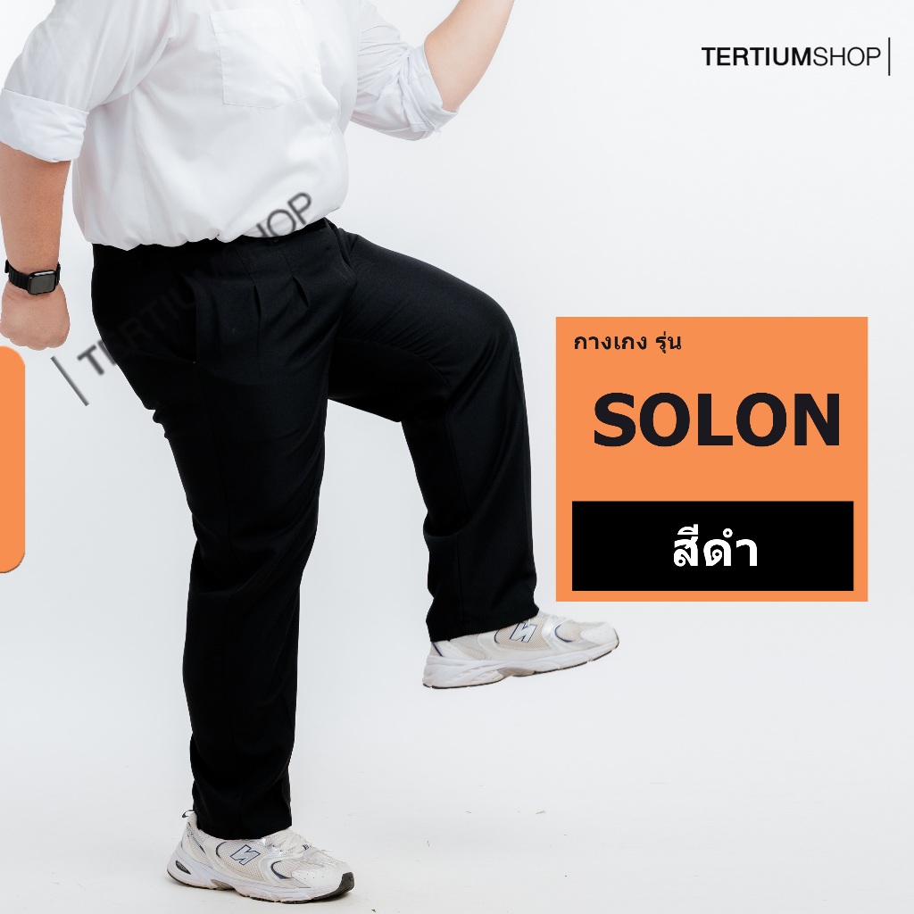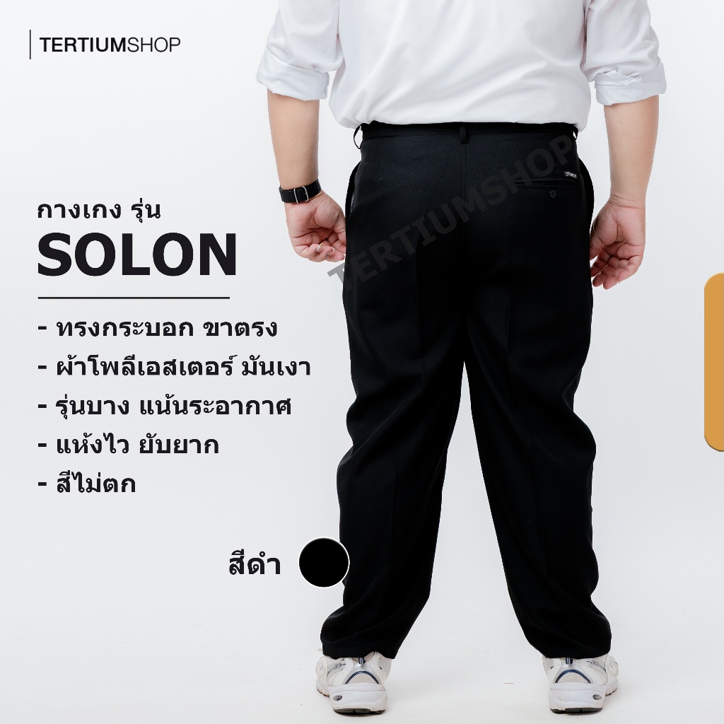 กางเกงสแล็ค ผ้าโซล่อน(ผ้ามัน) ขากระบอก มีจีบหน้า สีดำ สีกรม กางเกงทำงาน พนักงานทั่วไป รุ่นผ้าไม่หนา