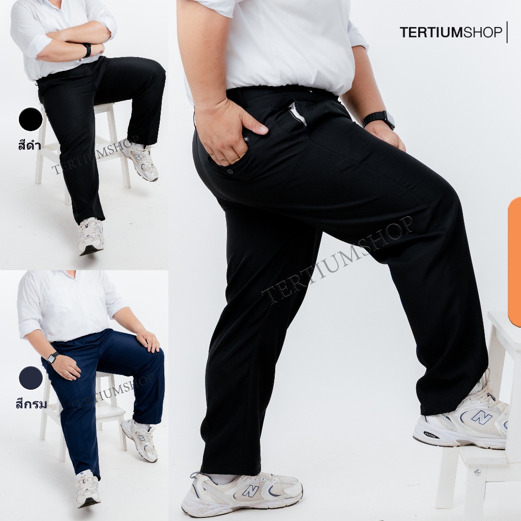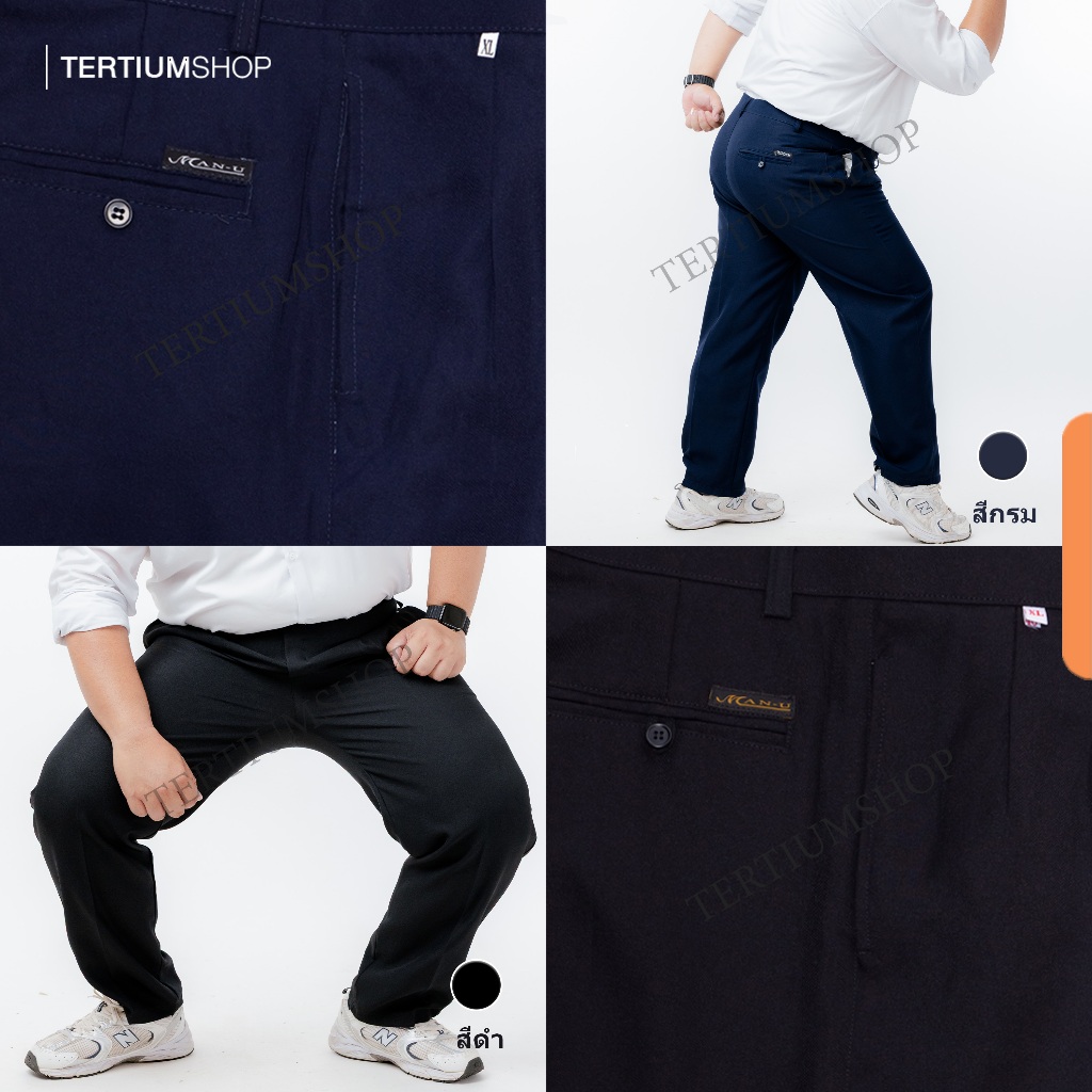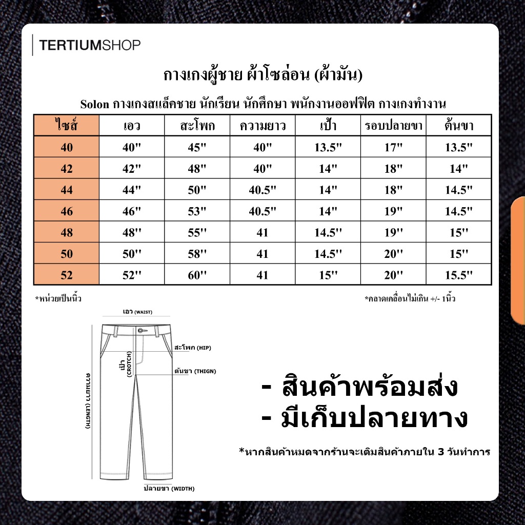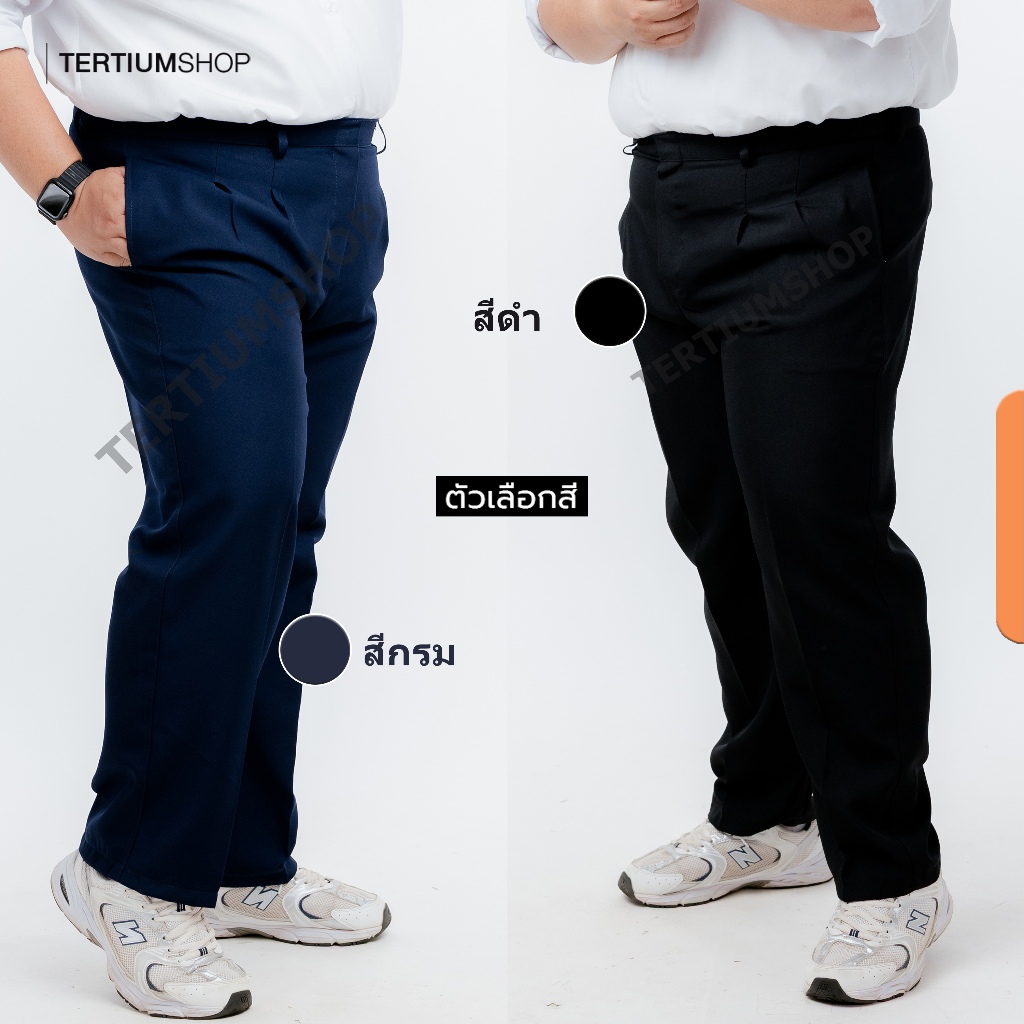 กางเกงสแล็ค ผ้าโซล่อน(ผ้ามัน) ขากระบอก มีจีบหน้า สีดำ สีกรม กางเกงทำงาน พนักงานทั่วไป รุ่นผ้าไม่หนา