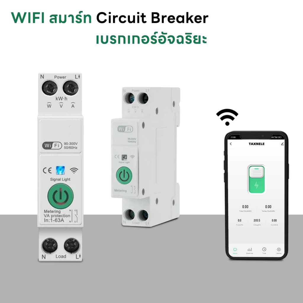 Ac 90-300V เบรกเกอร์วงจรอัจฉริยะ 1P ปรับได้ 1-63A มิเตอร์วัดพลังงาน รางDIN สมาร์ทโฮม รีโมตคอนโทรล ไร้สาย สวิตช์อัจฉริยะ