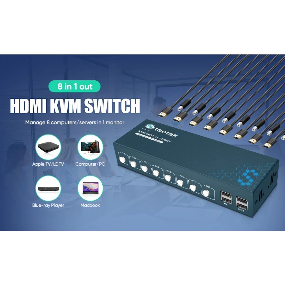 KVM Switch 8 Port V2.0 HDMI KVM Switch 4K 3D 4 in 1 Out 4 PCs Sharing with One Set Keyboard Mouse รองรับปุ่มลัด USB2.0