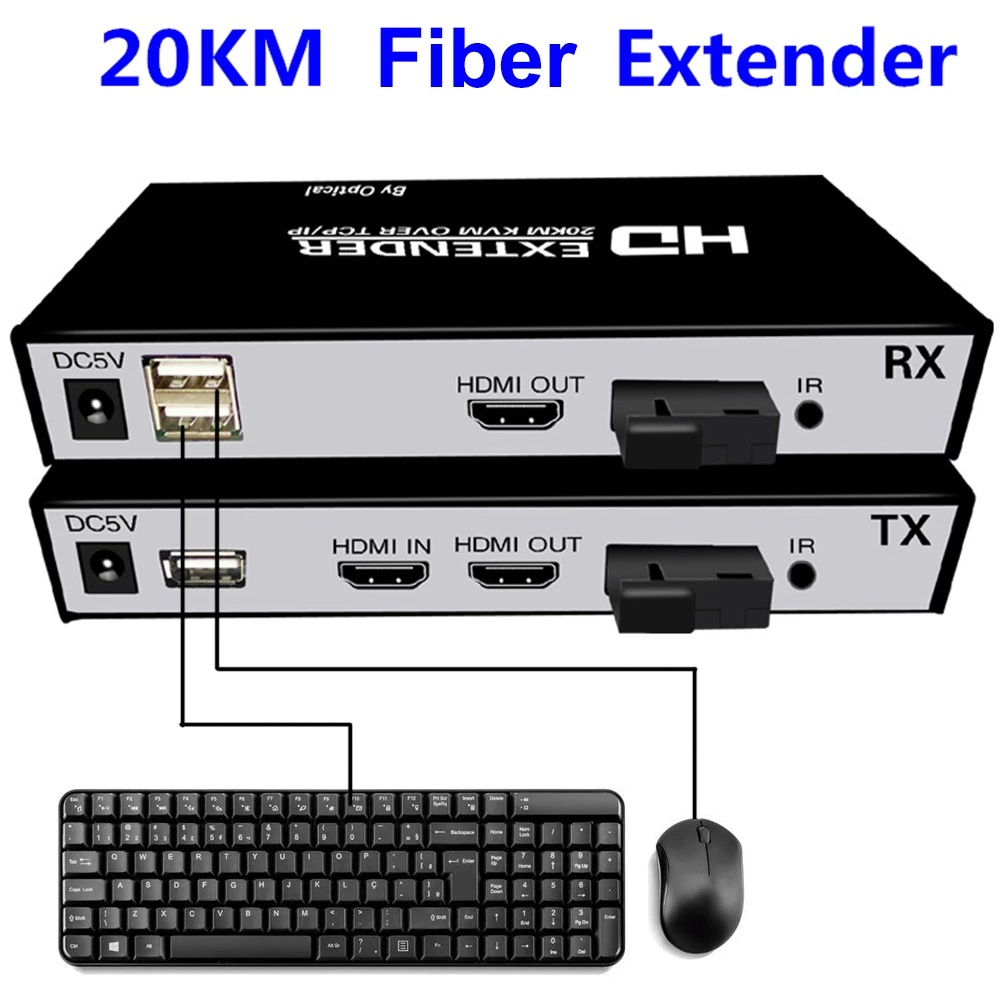 HD 1080P HDMI To Fiber Optical Extender Converter เครื่องส่งสัญญาณและตัวรับสัญญาณ Over SC สายไฟเบอร์รองรับ USB คีย์บอร์ดเมาส์สําหรับ PS4 PS4 กล้องแล็ปท็อป PC TO โปรเจคเตอร์ TV Monitor