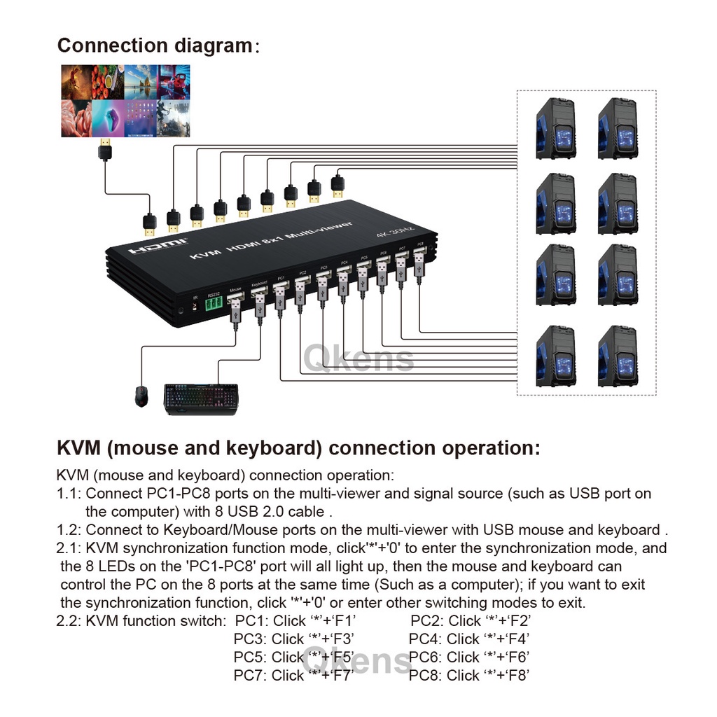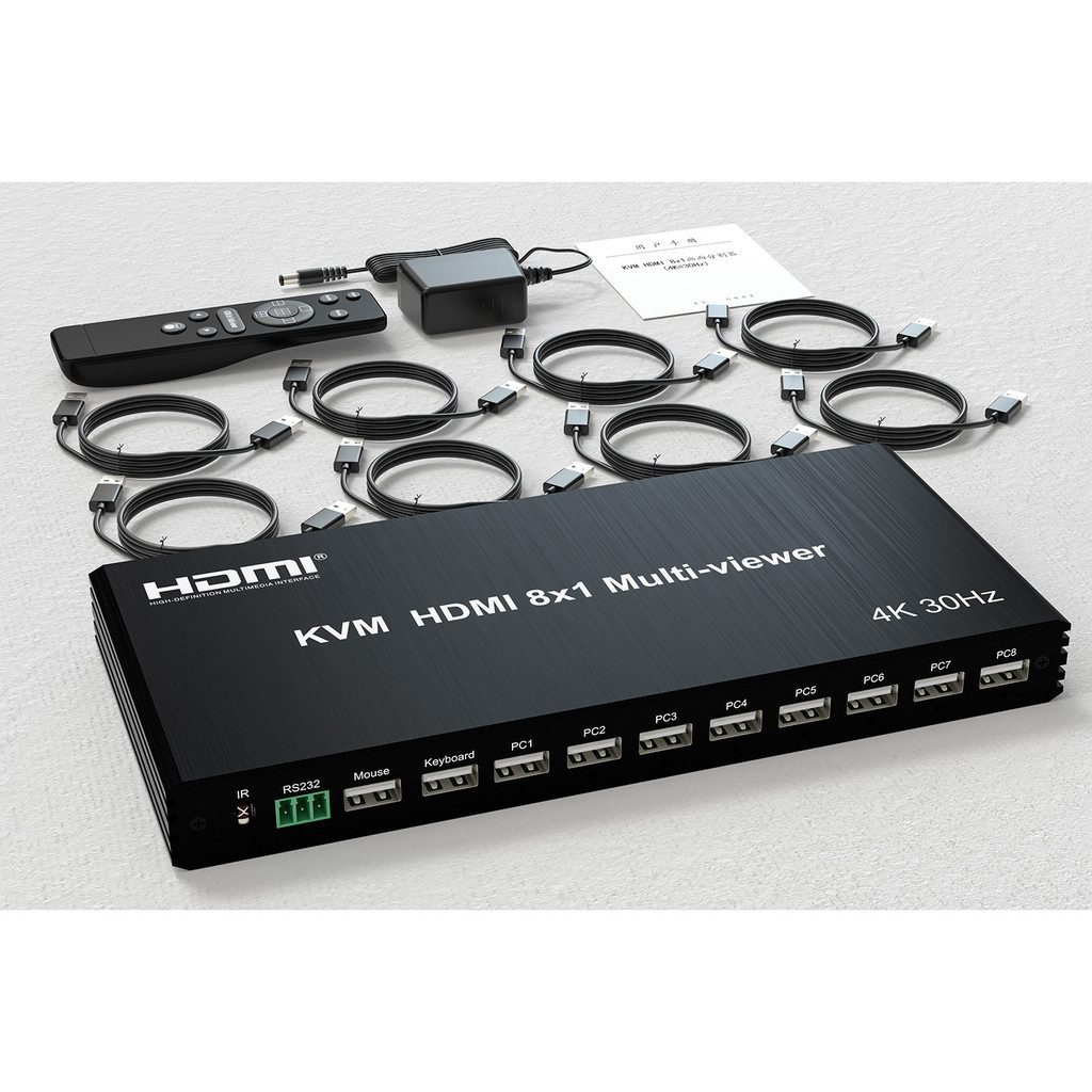 4K 8x1 HDMI KVM Multi-viewer สวิตช์ไม่มีรอยต่อ 16 โหมดจอแสดงผล Multiviewer วิดีโอหลายช่อง HDMI Quad Screen Multiviewer Converter สําหรับ Camrea แล็ปท็อป PC To TV Monitor