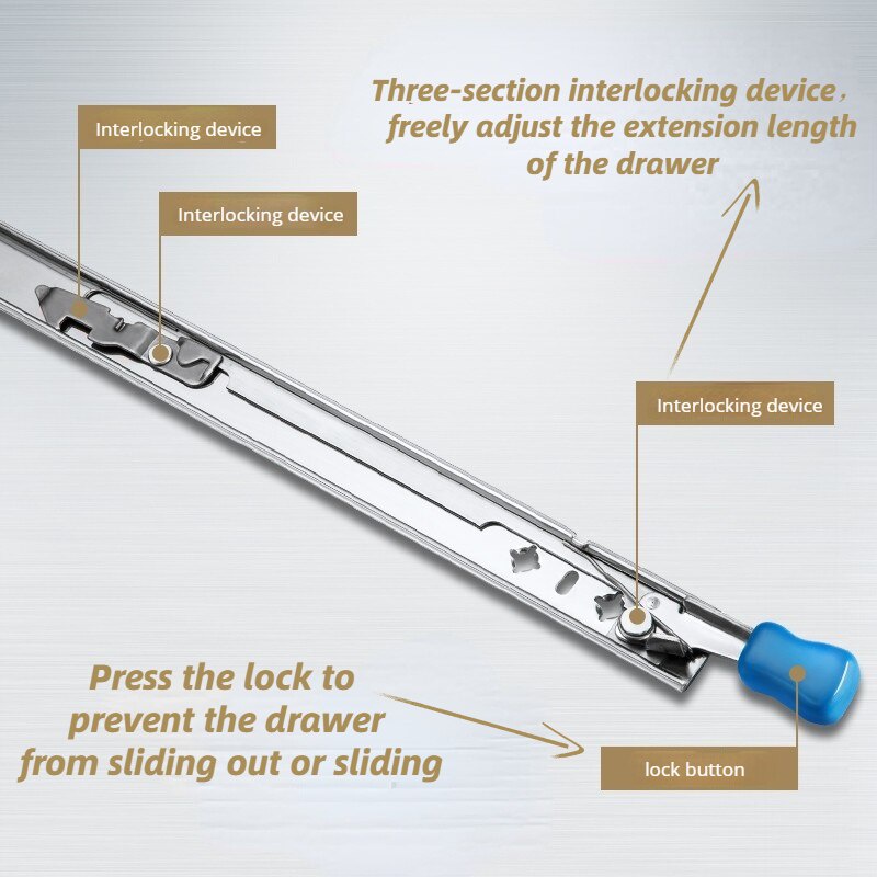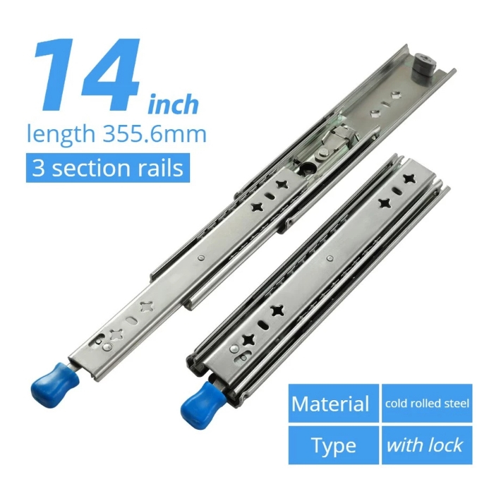 สามพับ Heavy Duty ลิ้นชักสไลด์ 53 มม.พร้อมล็อค Fully Extended Ball Bearing ลิ้นชักรางสไลด์ 120 กก.แบริ่งความจุ 1 คู่ AAAN