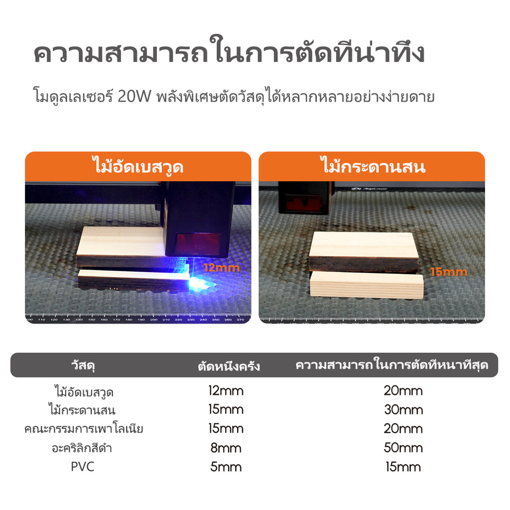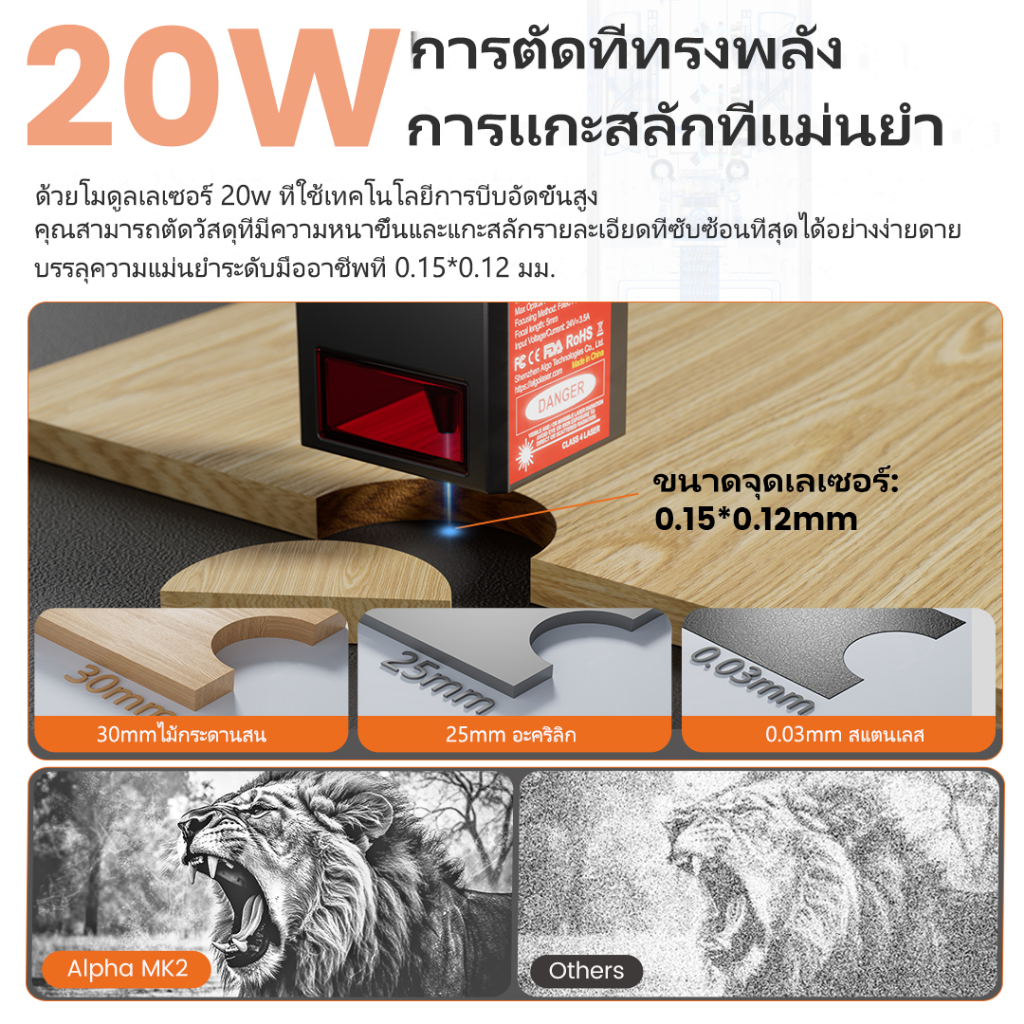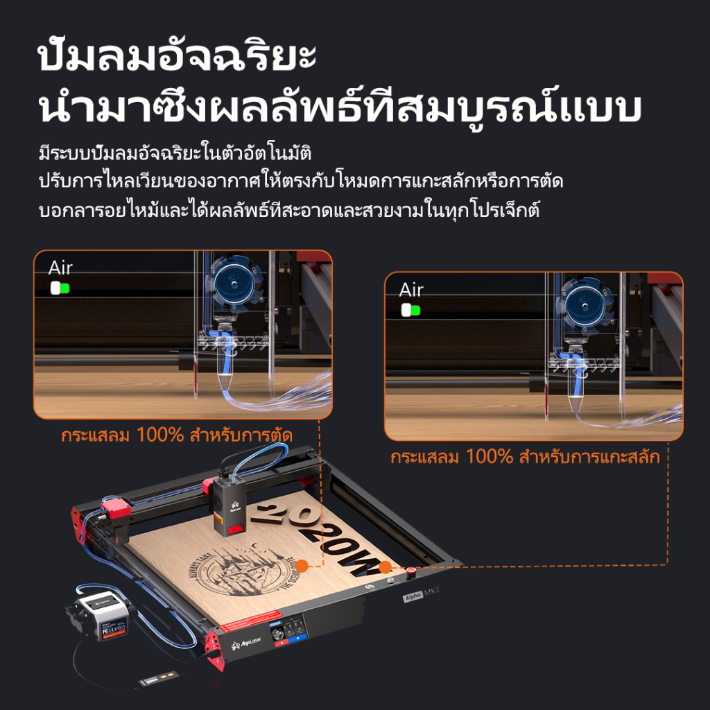 AlgoLaser Alpha MK2 20W 3 ชิ้นเครื่องแกะสลักเลเซอร์/เครื่องตัดไม้/โลหะอะคริลิคแกะสลักสำหรับผู้เริ่มต้น