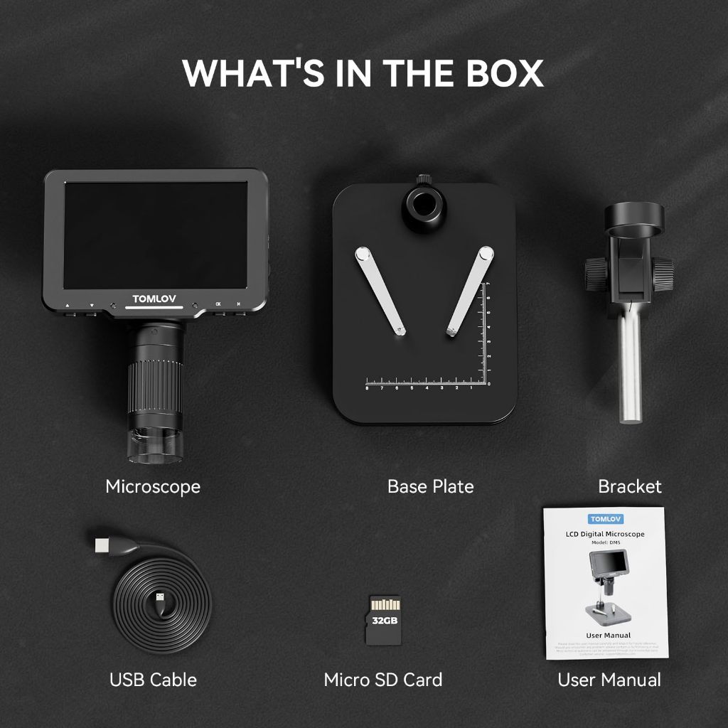 【🔥Limited Time Offer🔥】Tomlov DM5 กล้องจุลทรรศน์ดิจิทัล LCD 1000X 5 นิ้ว พร้อมไฟ LED แว่นขยายเหรียญ 1080P ถ่ายภาพ วิดีโอ ดูพีซี พร้อม Windows Mac การ์ด SD 32GB