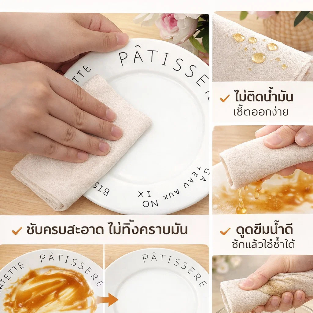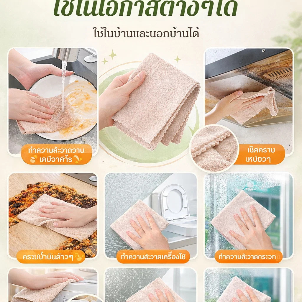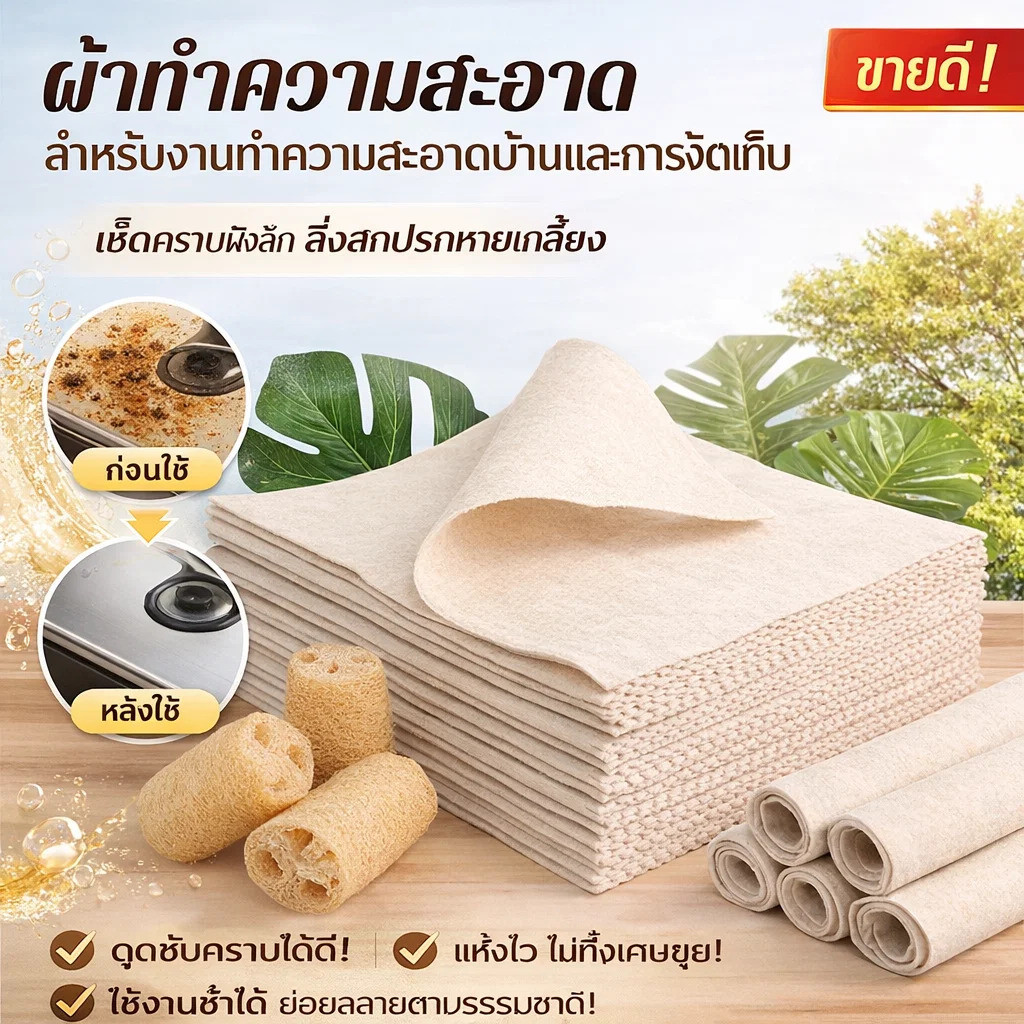 5ชิ้น/10ชิ้น 💖ซื้อหนึ่งแถมสองฟรี💖[ปราศจากน้ำมัน/ทำความสะอาดง่าย]แผ่นใยขัดใยพืชจากใยบวบ ผ้าขี้ริ้วน้ำมันไม่ออกฤทธิ์ง่าย เช็ดจาน ขจัดคราบสกปรกได้ง่าย ดูดซับน้ำมันและผ้าขี้ริ้วน้ำมันได้ยาก