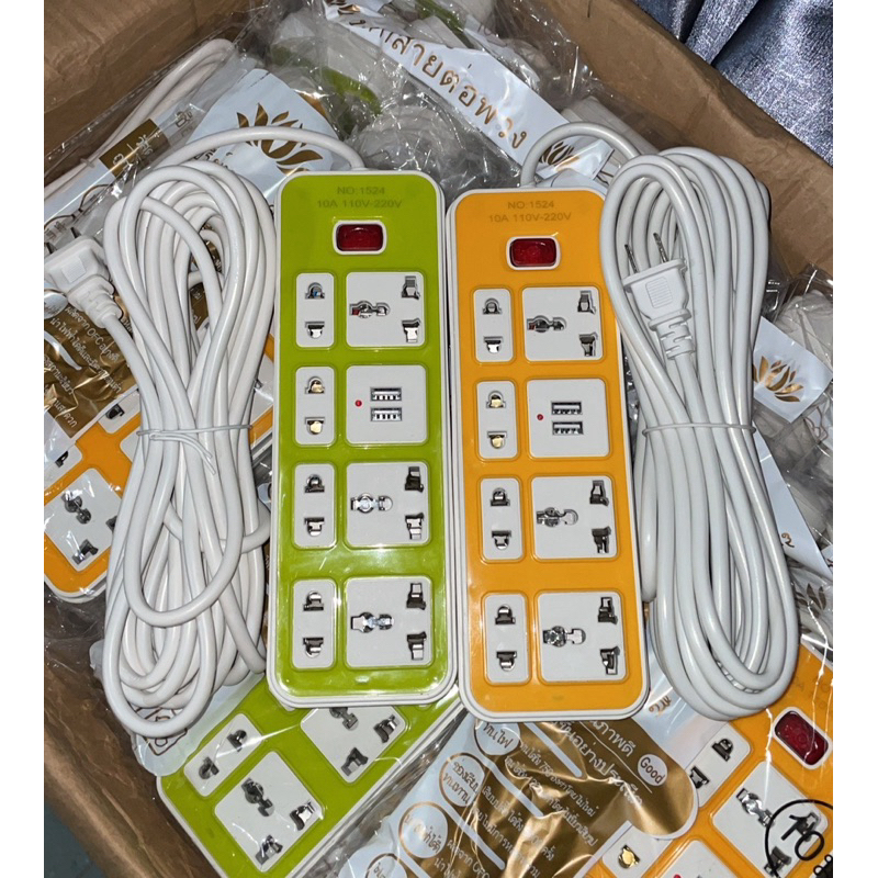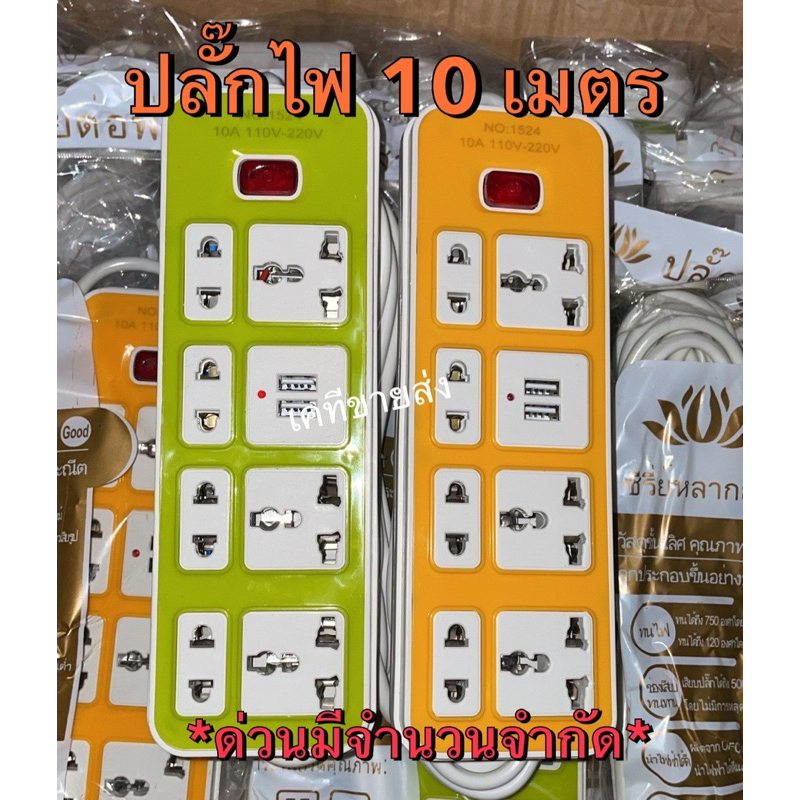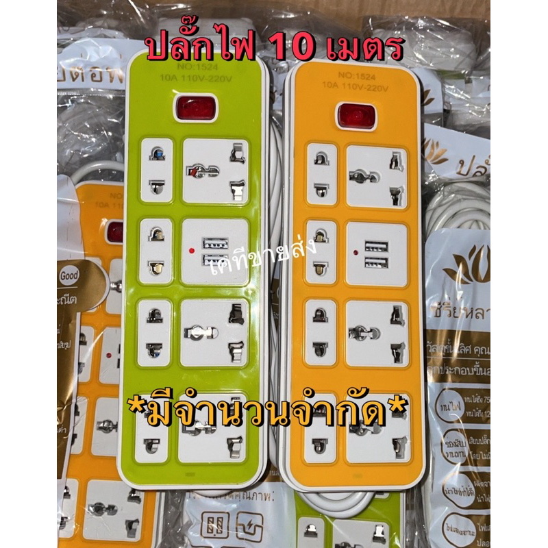 (พร้อมส่ง) ปลั๊กไฟ 10 เมตร ปลั๊กพ่วง สายไฟหนา หลายสี 2500w มีหลายช่องเสียบ มี มอก.