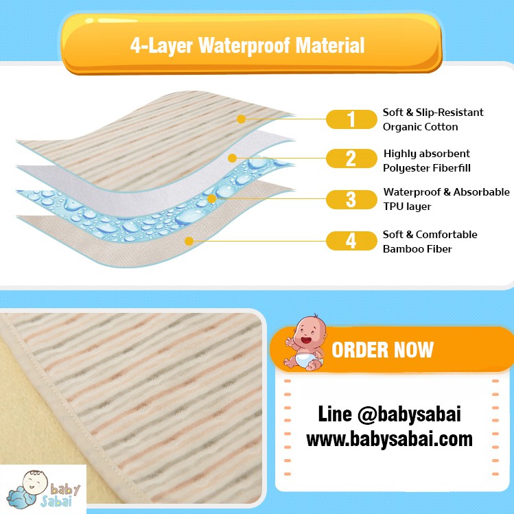 แผ่นรองนอนกันน้ำ รองฉี่ รองนอนกันฉี่ กันเปื้อนสำหรับเด็กทารก Organic Waterproof Urine Pad For Baby