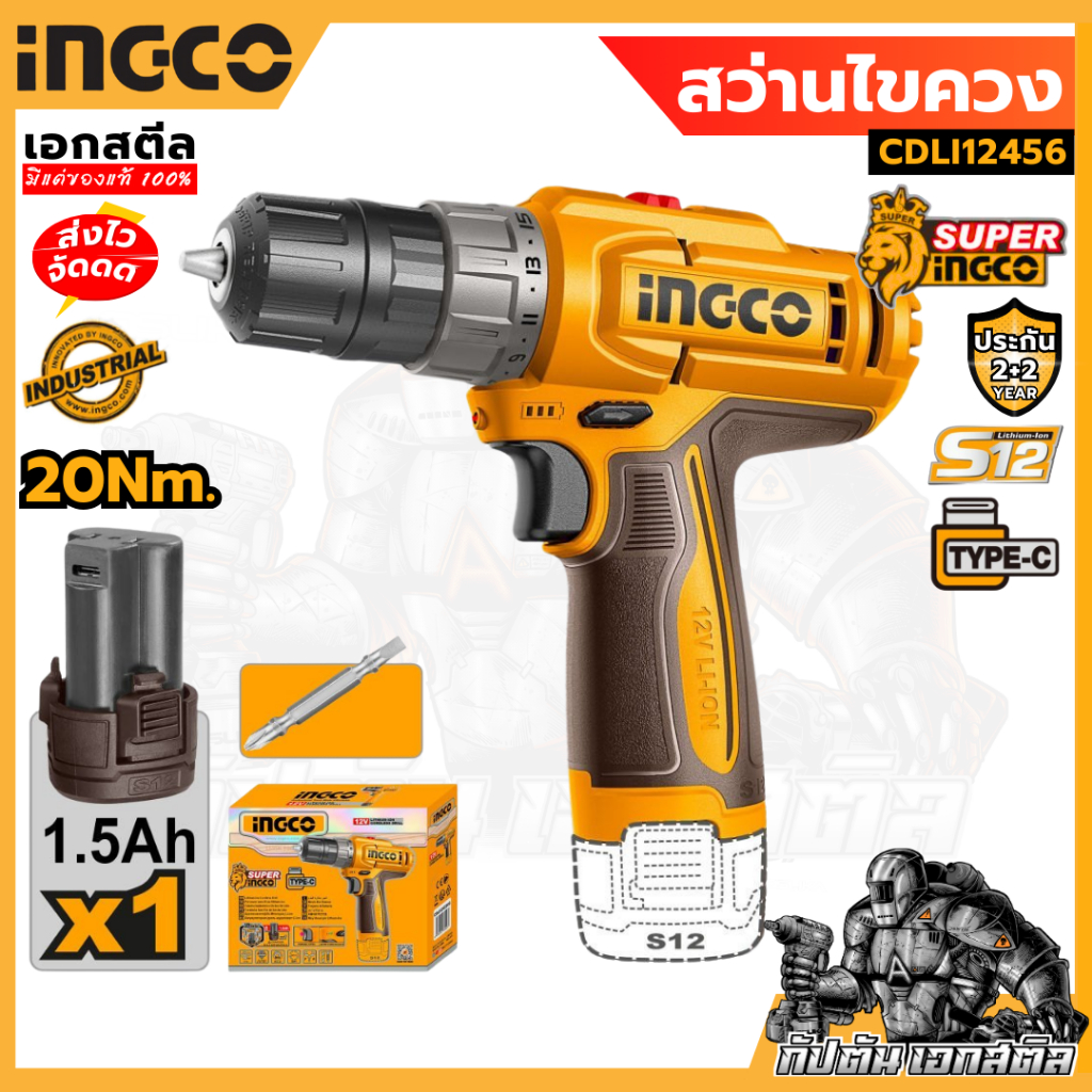 (ถูกสุด) INGCO สว่านไขควง CDLI12456 20Nm ไขควงไร้สาย 12V ประกัน 2+2