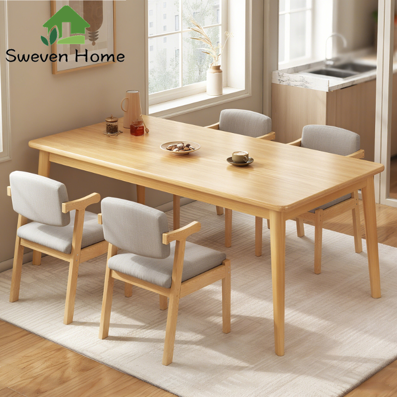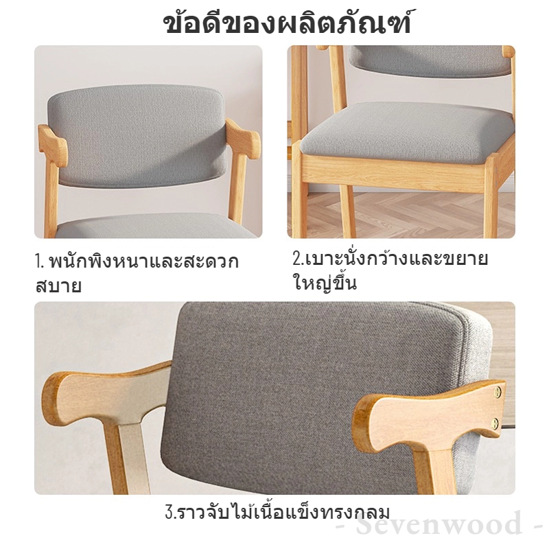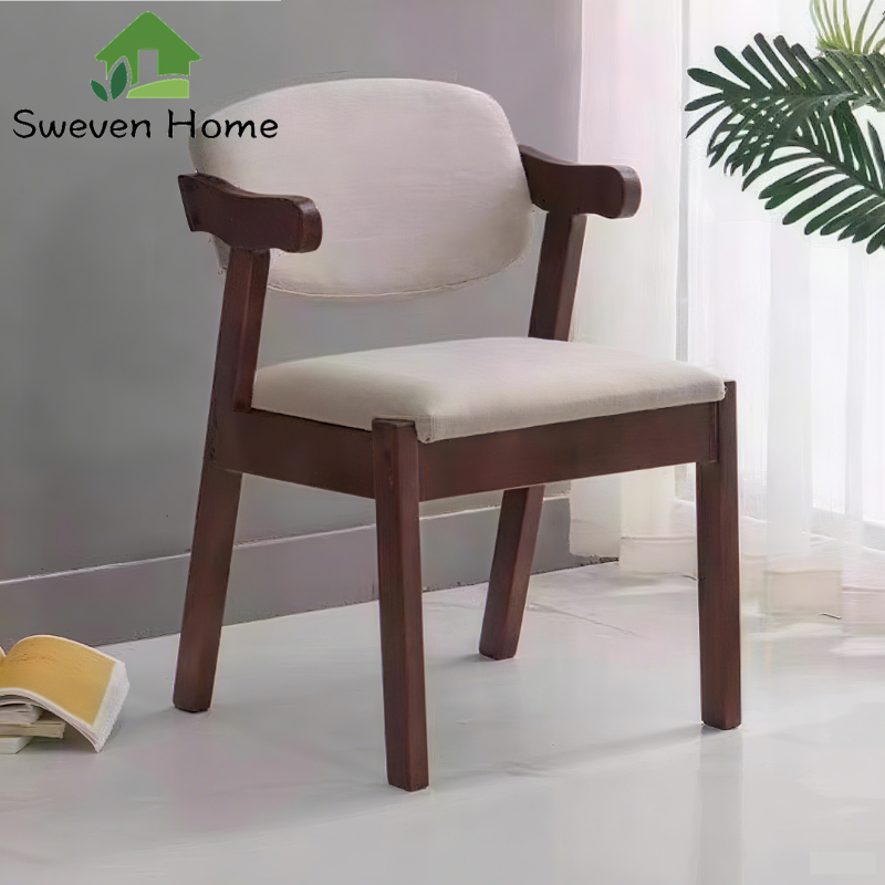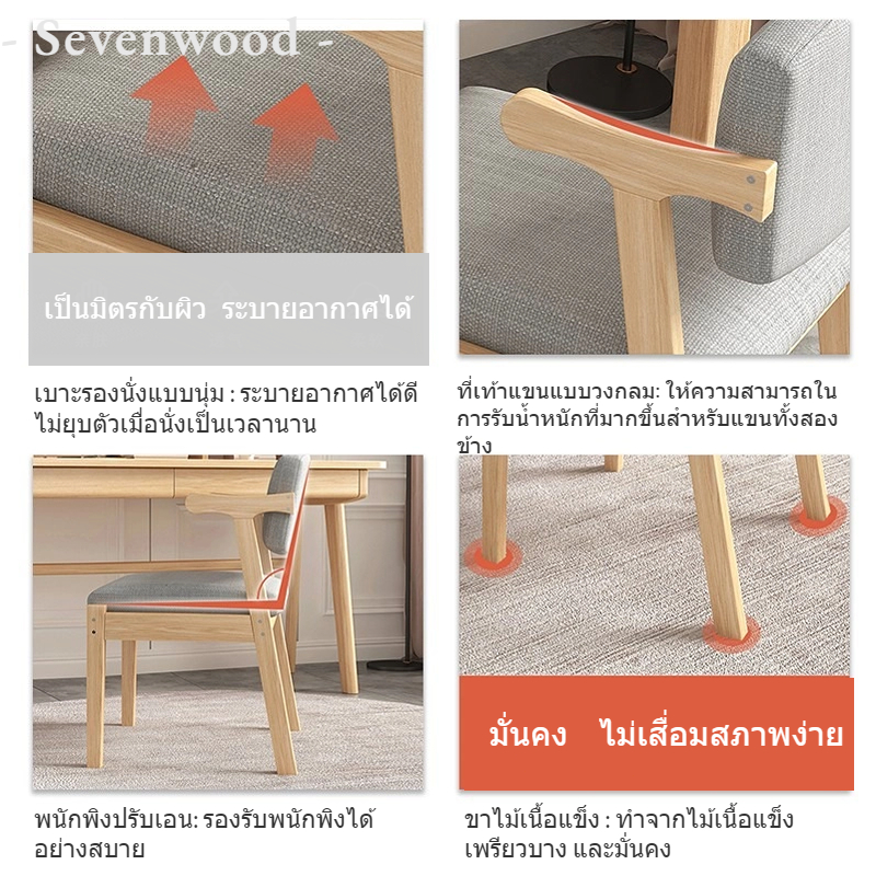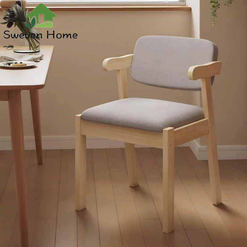 Sweven Home เก้าอี้ไม้แท้ เก้าอี้ทานอาหารสไตล์นอร์ดิก สีไม้ธรรมชาติ มีที่วางแขนและพนักพิง เก้าอี้สำนักงานศึกษา ติดตั้งง่